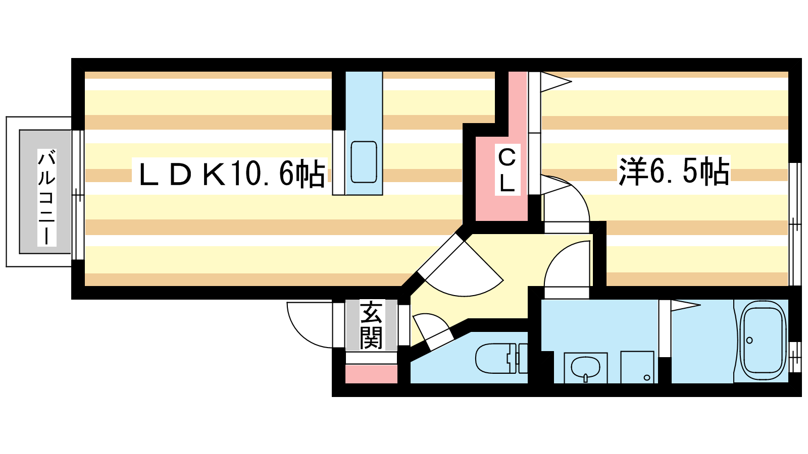 - 洋室6.5帖、LDK10.6帖