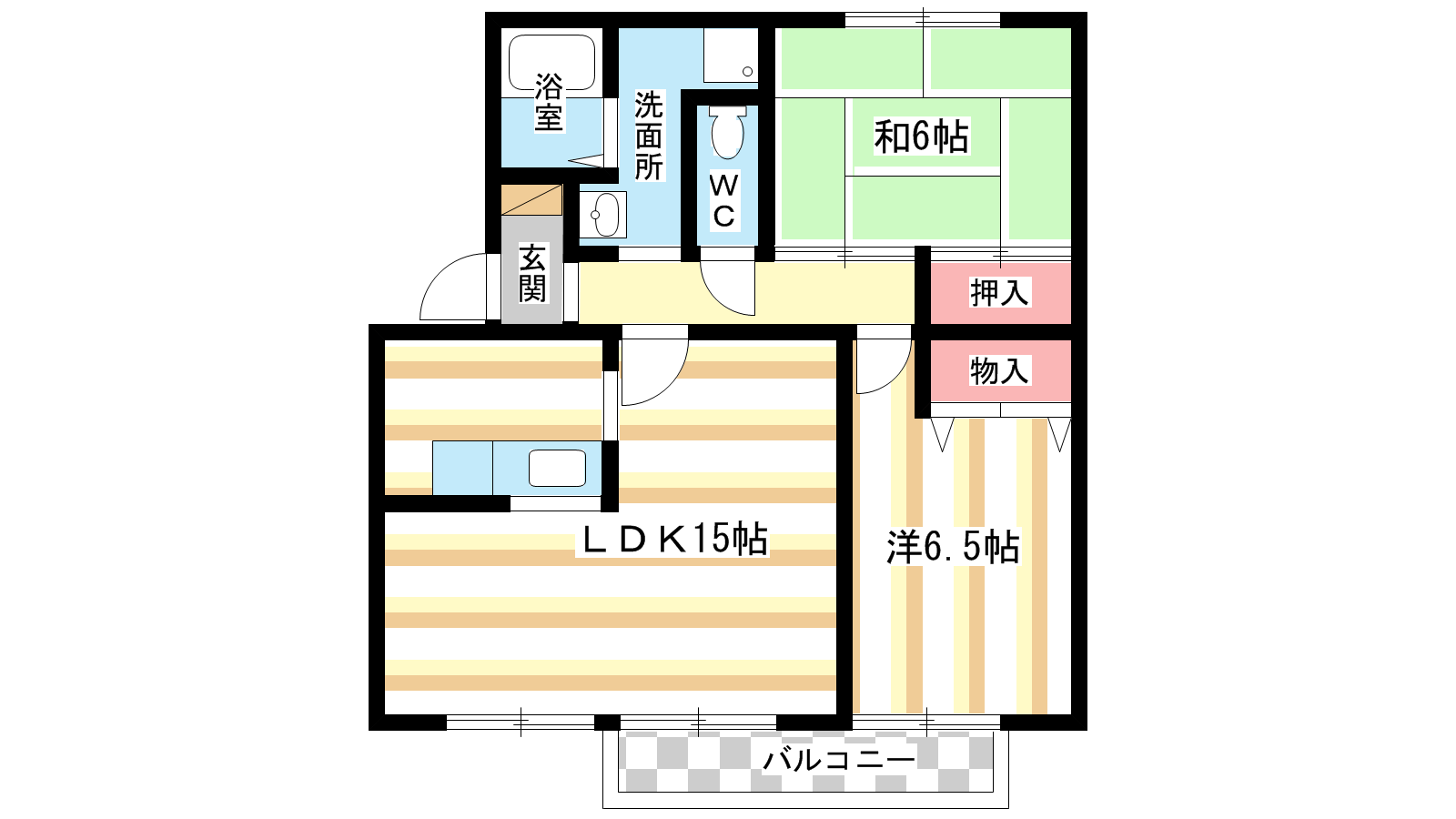 - 洋室6.5帖、和室6帖、LDK14帖