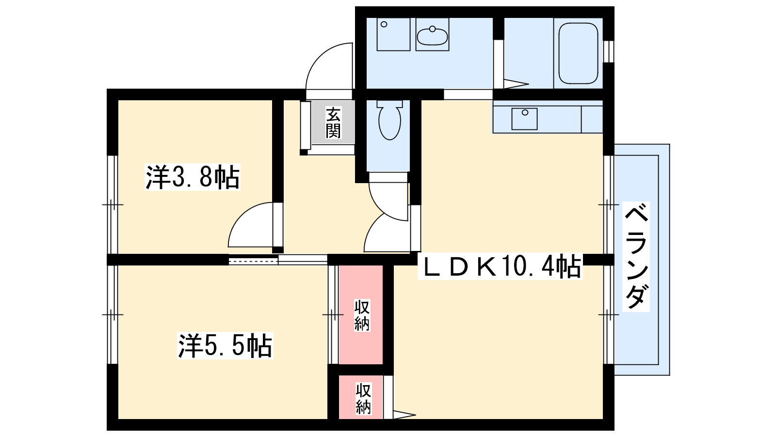 - LDK10.4帖、洋室3.8帖、和室5.5帖