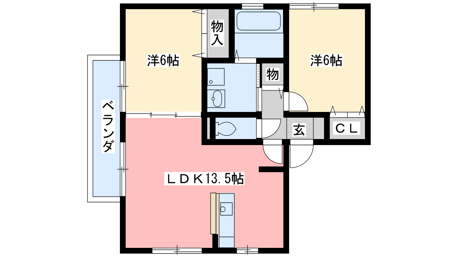 - 洋室6帖、洋室6帖、LDK13.5帖