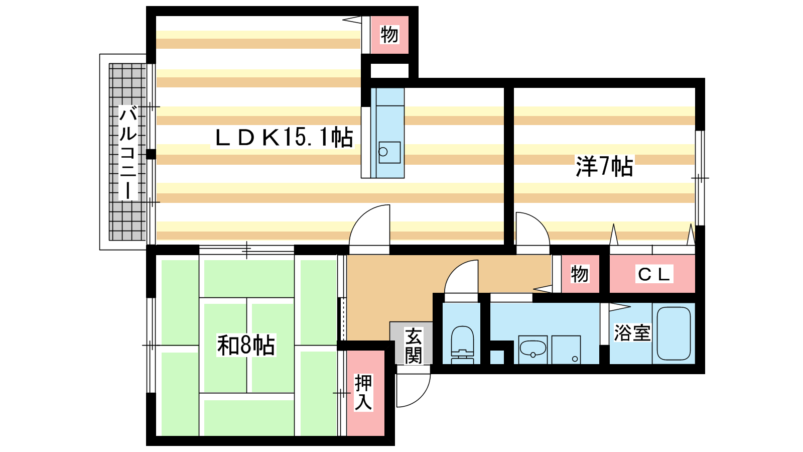- 和室8帖、洋室7帖、LDK15帖