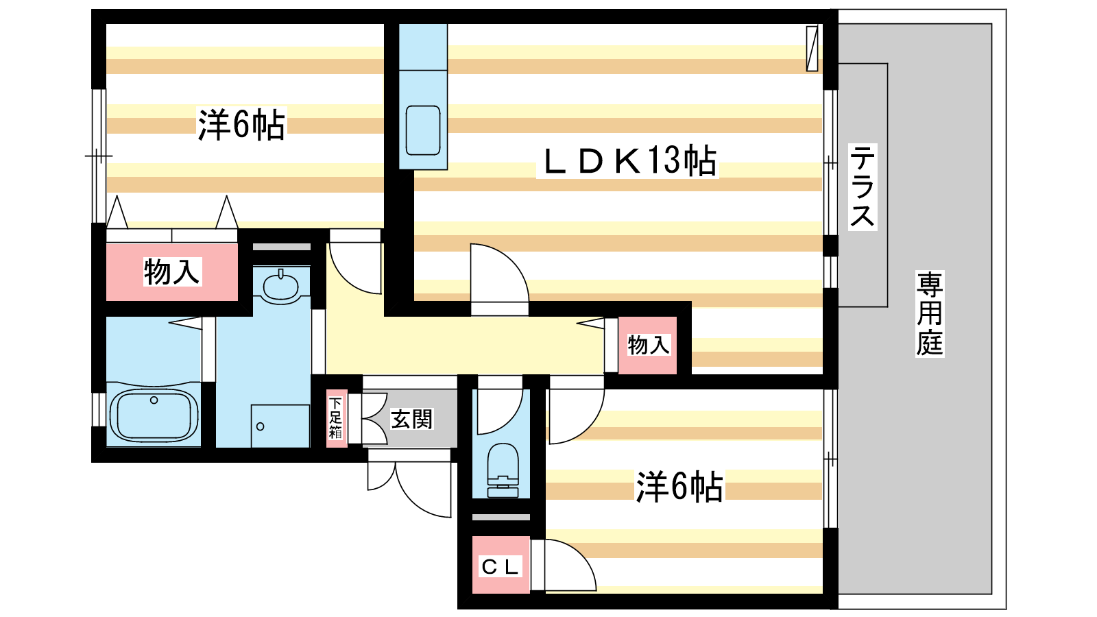 - 洋室6帖、洋室6帖、LDK13帖