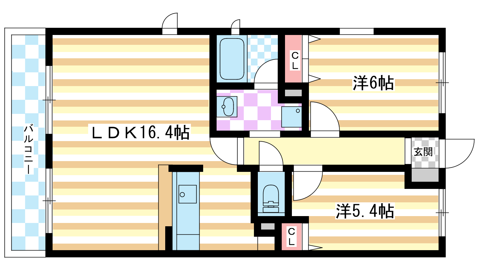 - 洋室6帖、洋室5.4帖、LDK16.4帖