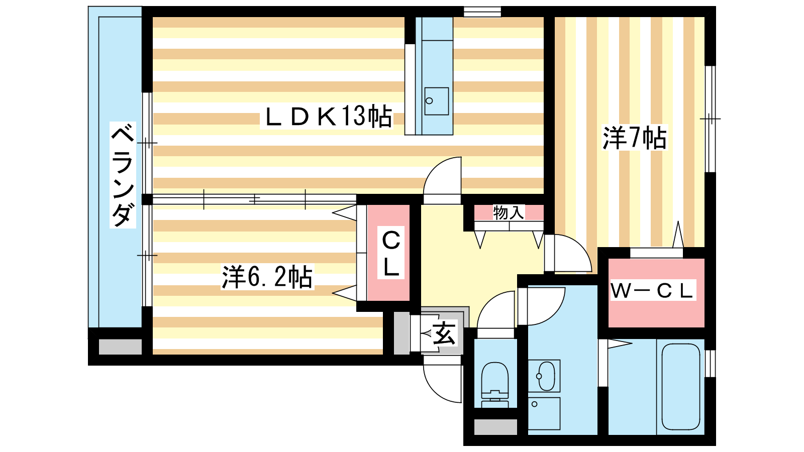 - 洋室7帖、洋室6.2帖、LDK13帖
