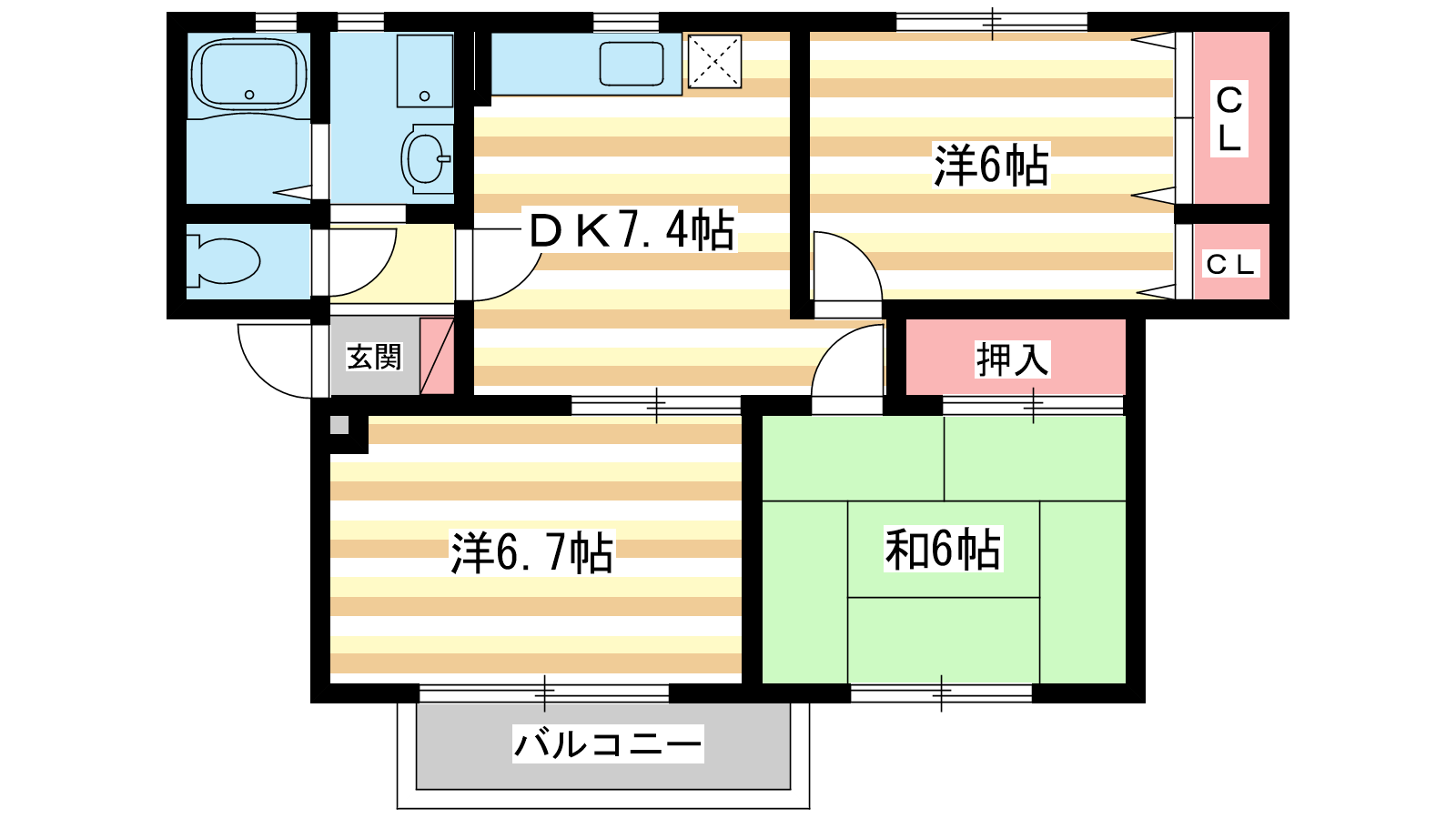 - 洋室6.7帖、洋室6帖、和室6帖、DK7.4帖