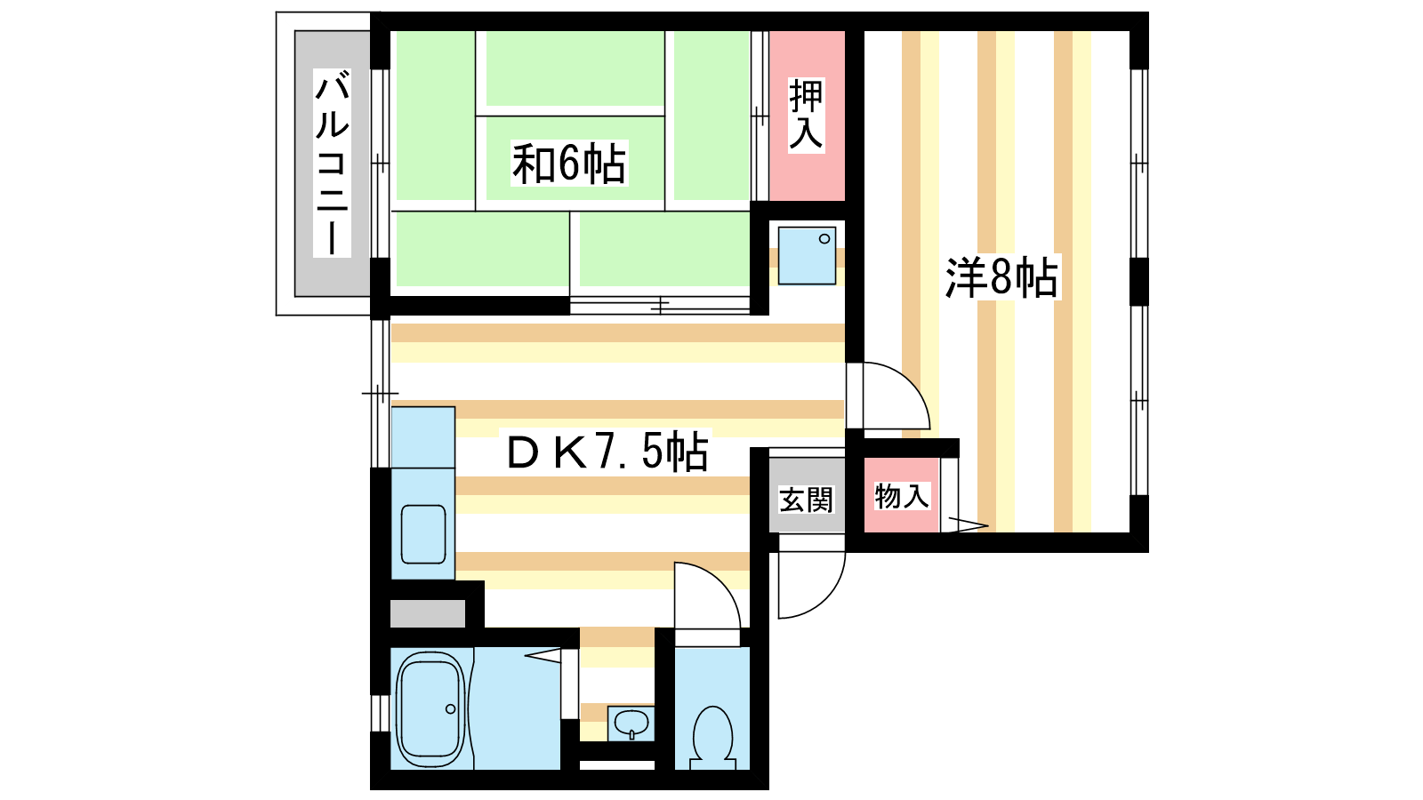 - 和室6帖、洋室8帖、DK7.5帖