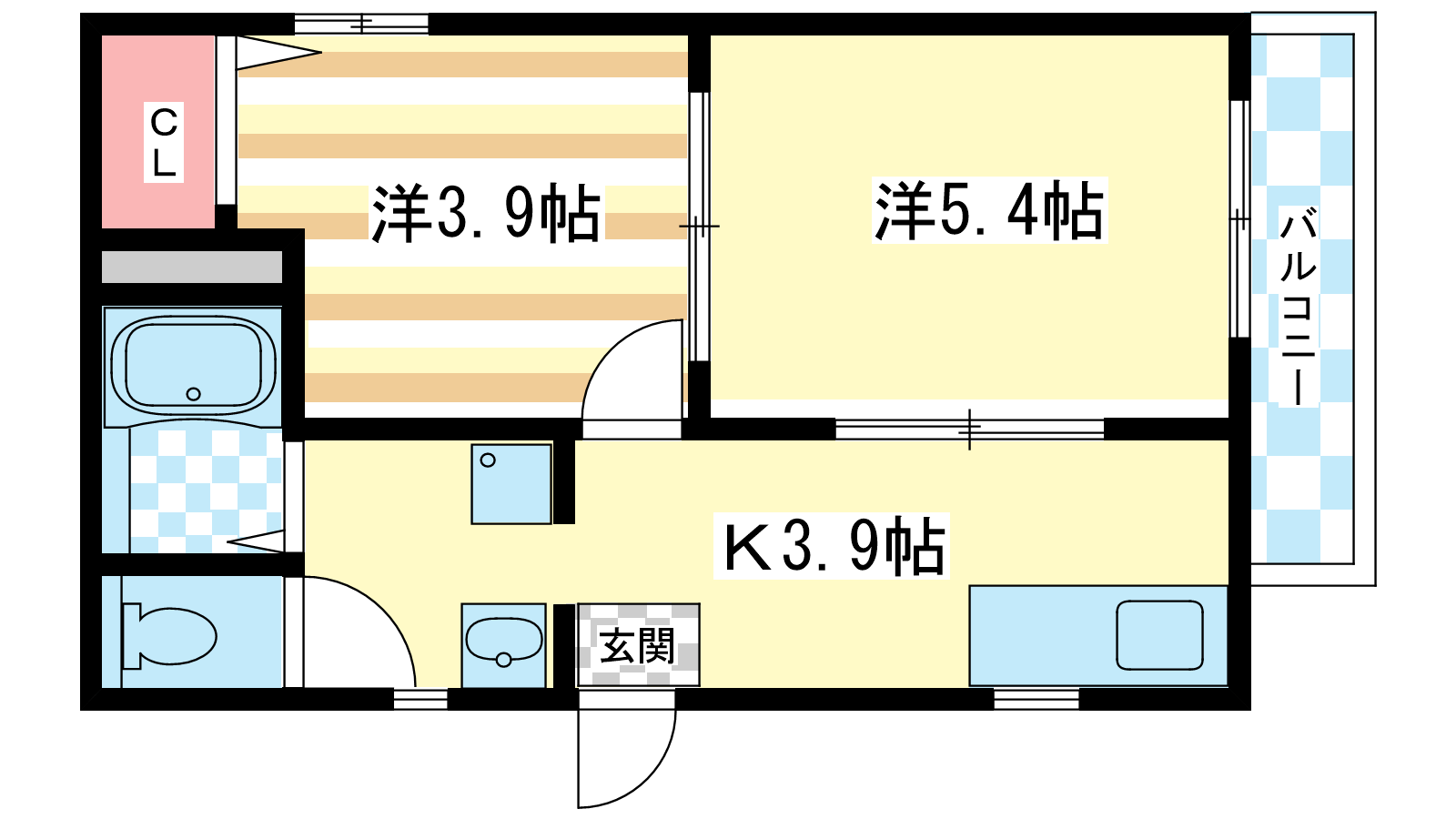 - 洋室5.4帖、洋室3.9帖、DK3.9帖