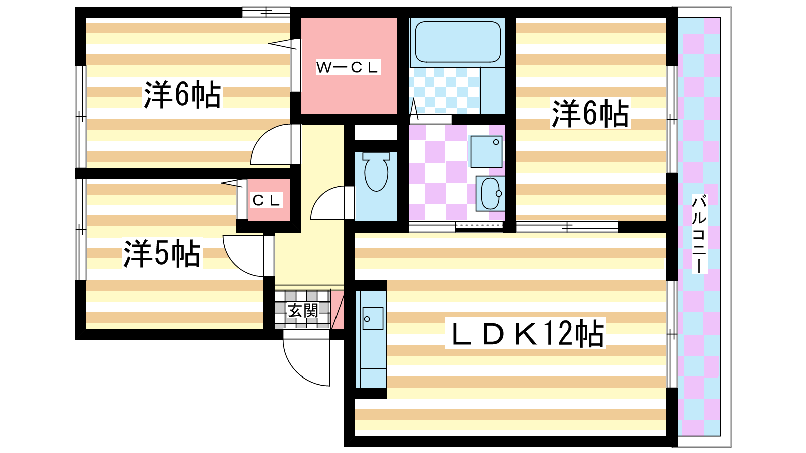 - 洋室6帖、洋室6帖、洋室5帖、LDK12帖、S2帖