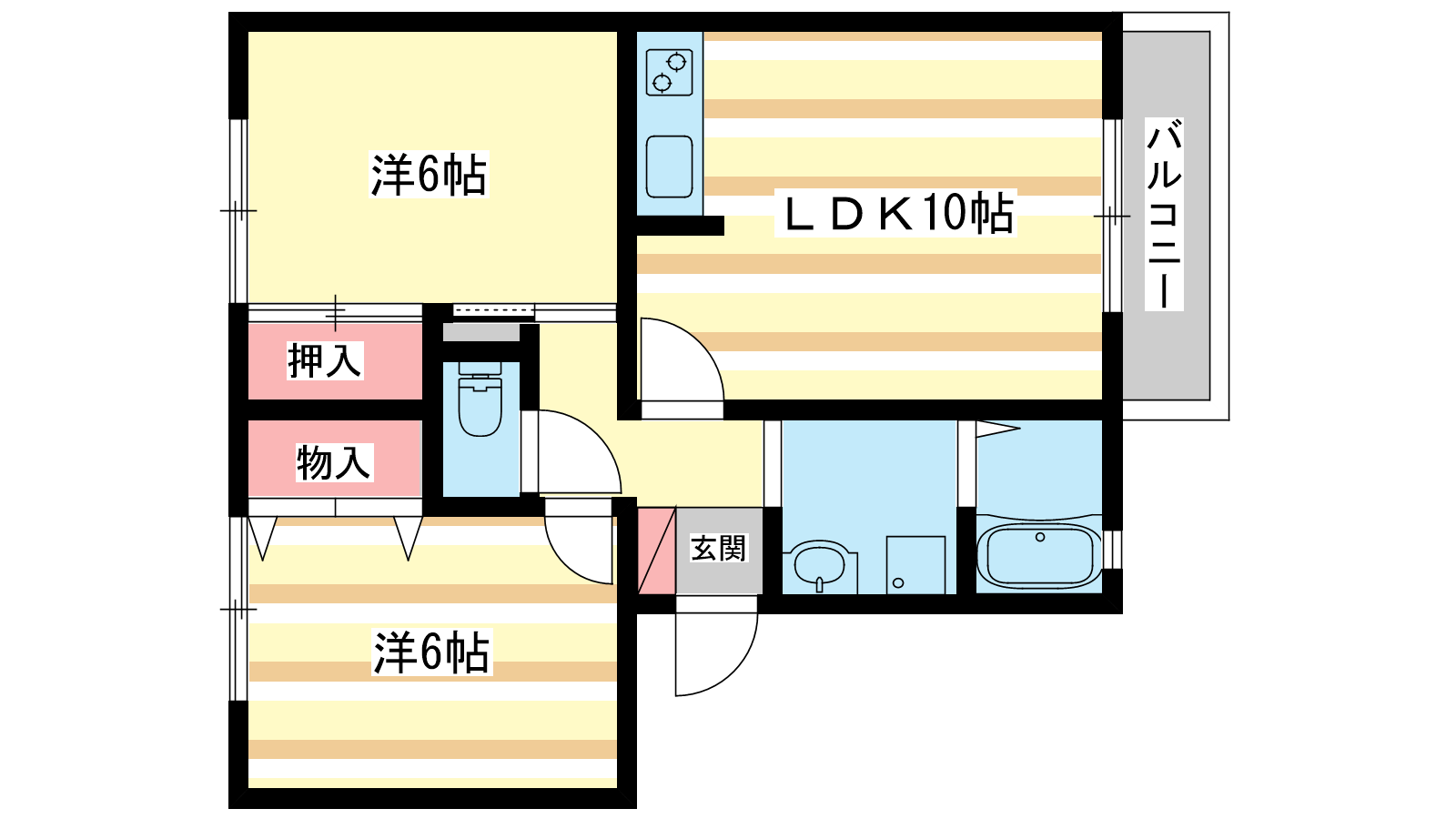 - 洋室6帖、洋室6帖、LDK10帖
