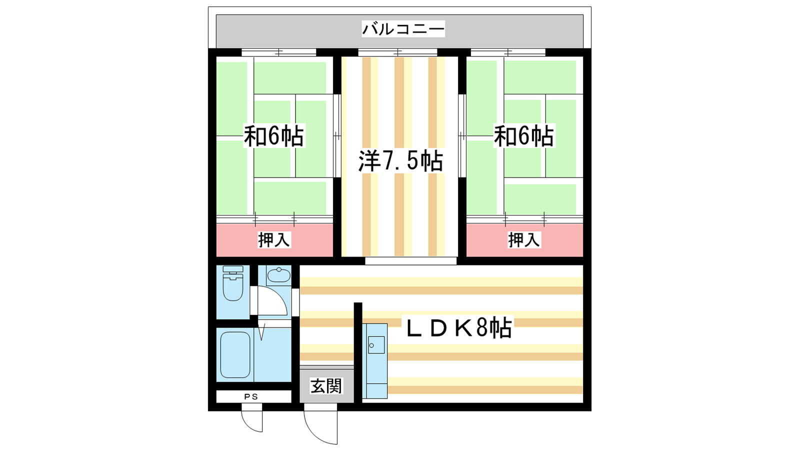 - 和室6帖、和室6帖、洋室7.5帖、LDK9帖