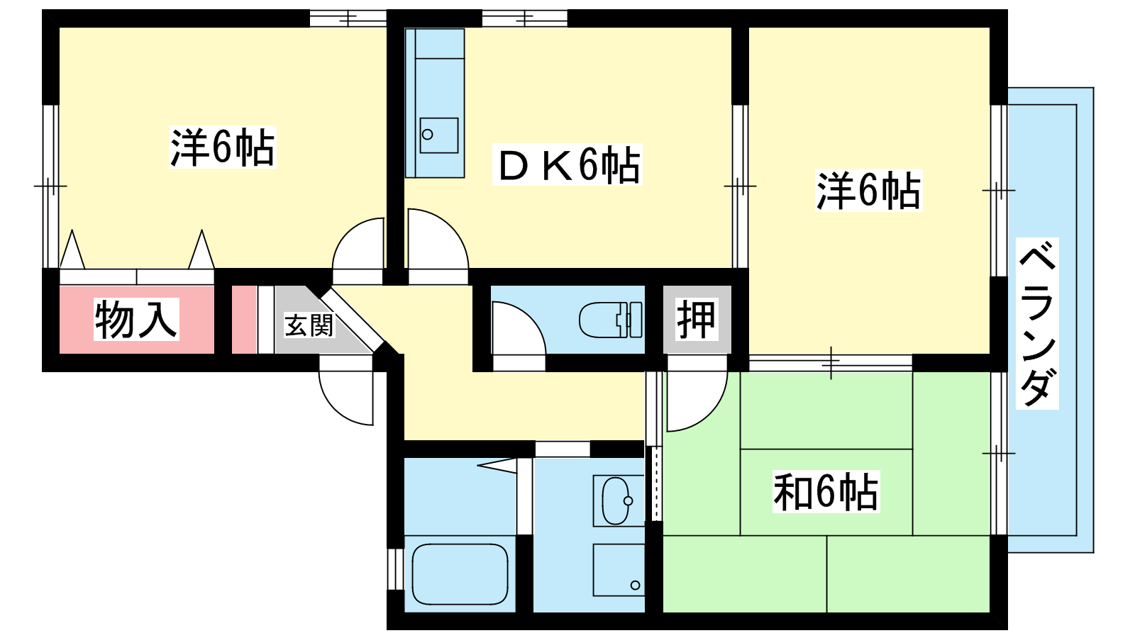 - 洋室6帖、洋室6帖、和室6帖、DK6帖
