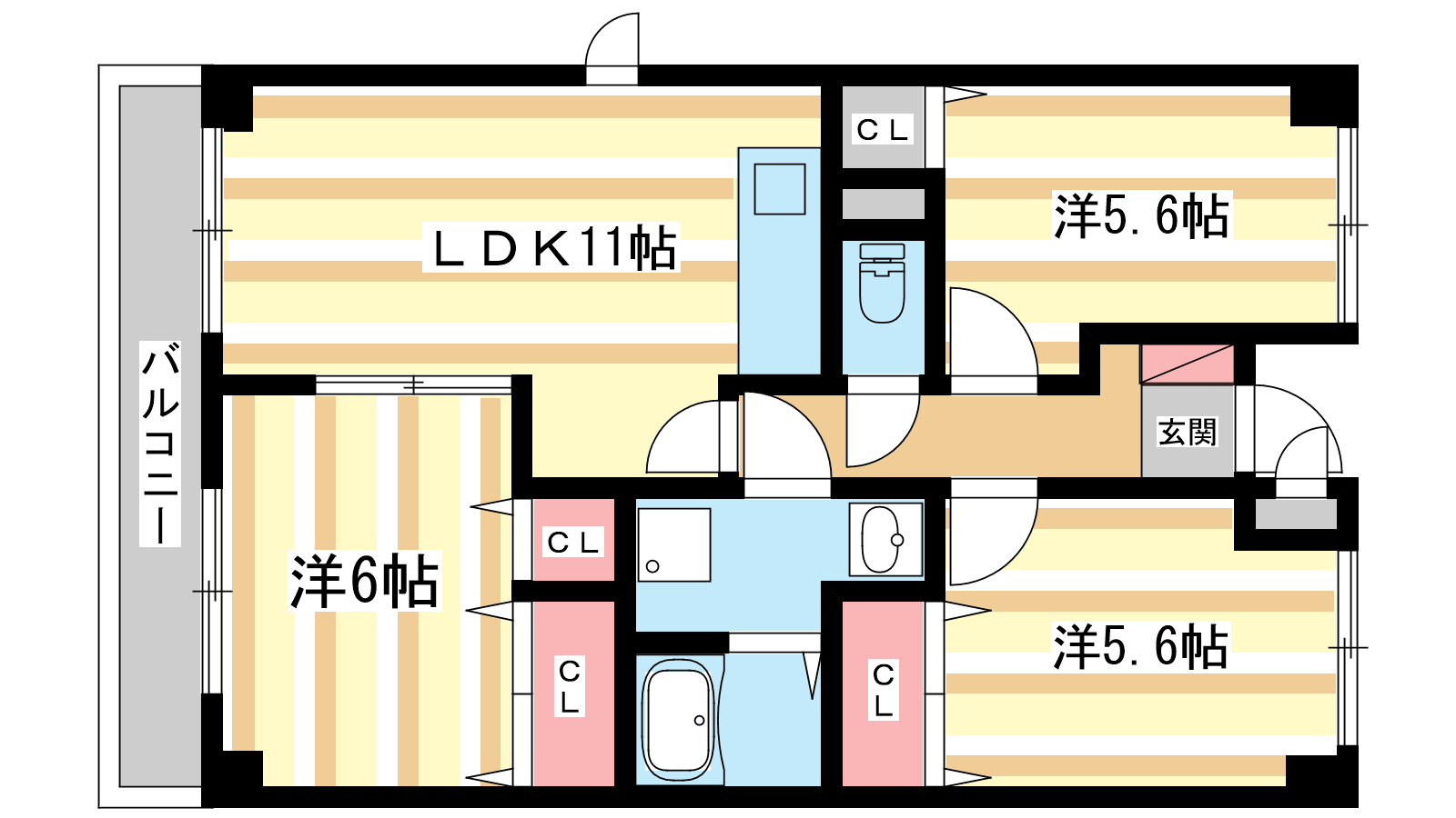 - 洋室5.6帖、洋室5.6帖、洋室6帖、LDK11帖