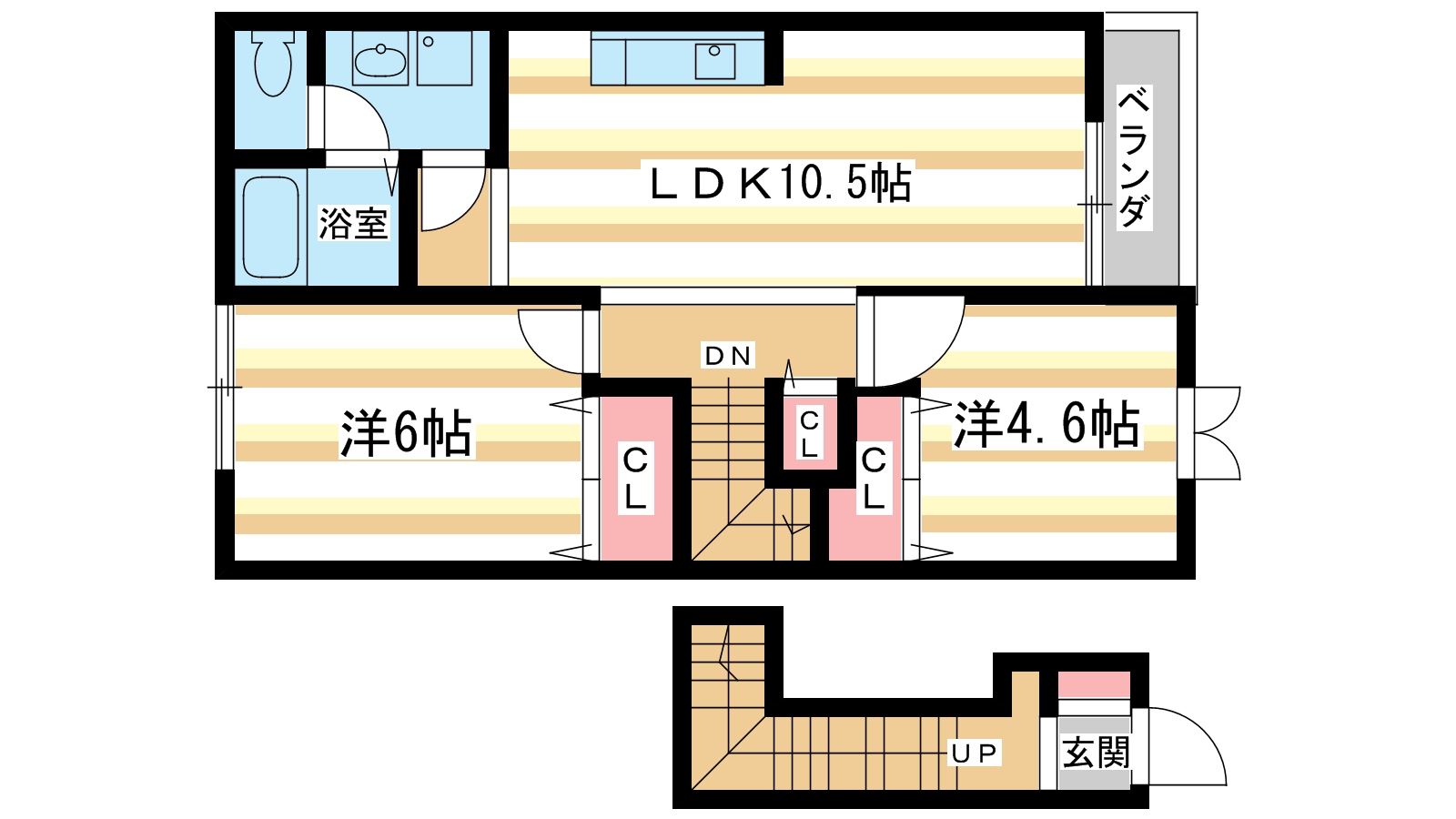 - 洋室6帖、洋室4.5帖、LDK10.5帖