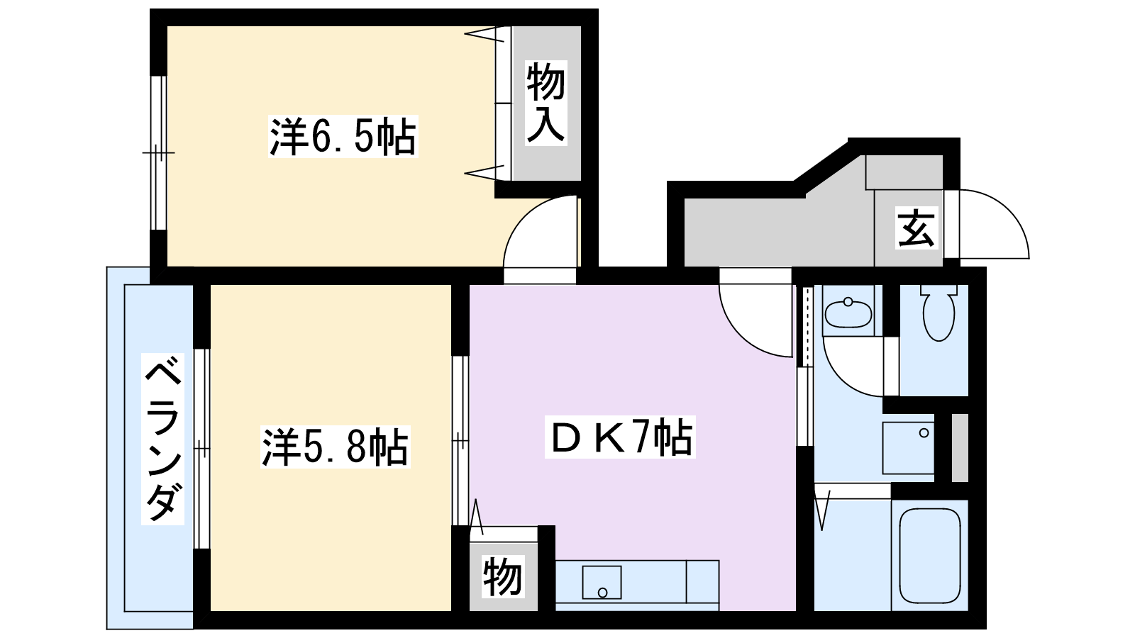 - 洋室6.5帖、洋室5.8帖、DK7帖