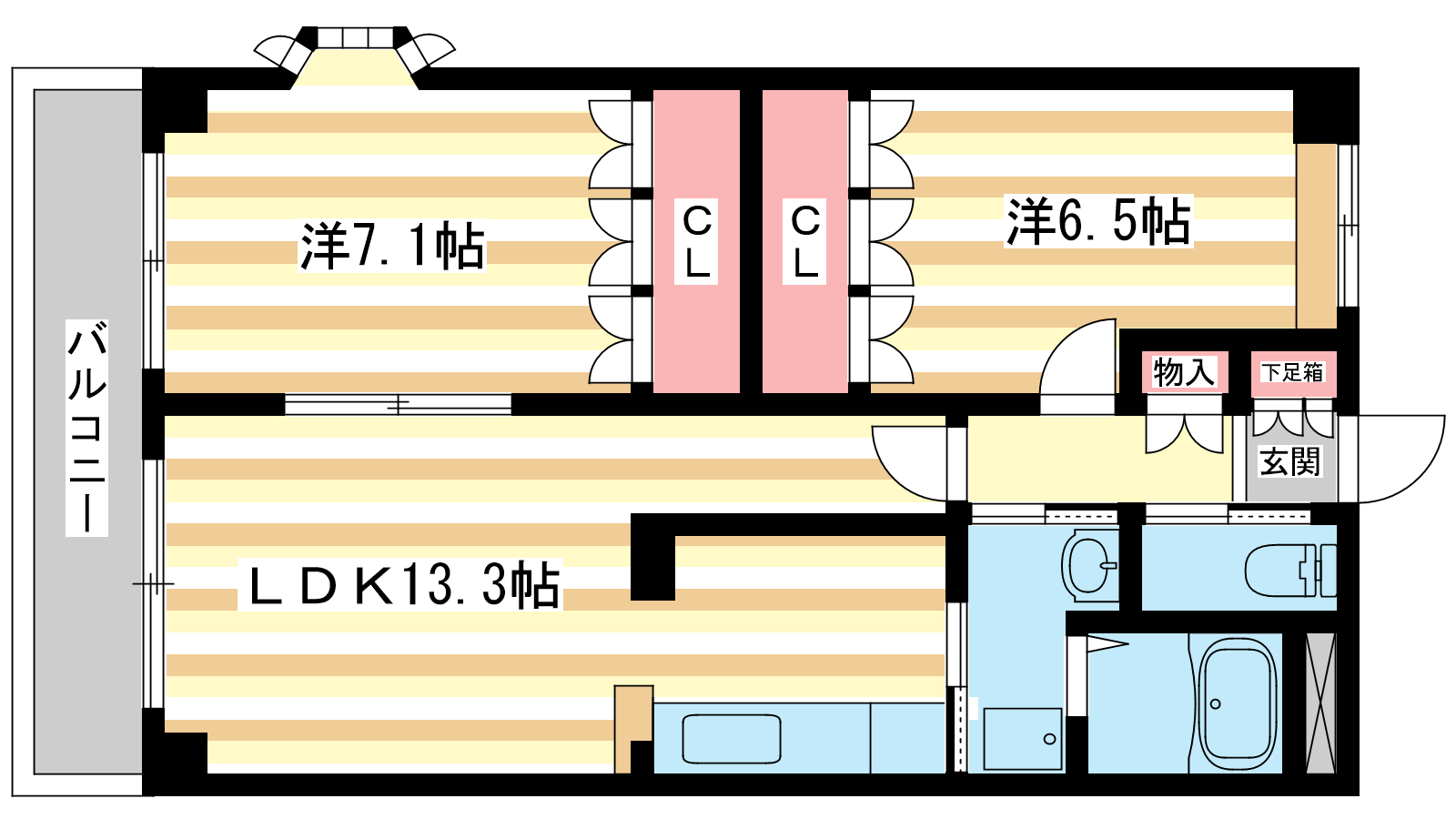 - 洋室7.1帖、洋室6.5帖、LDK13.3帖