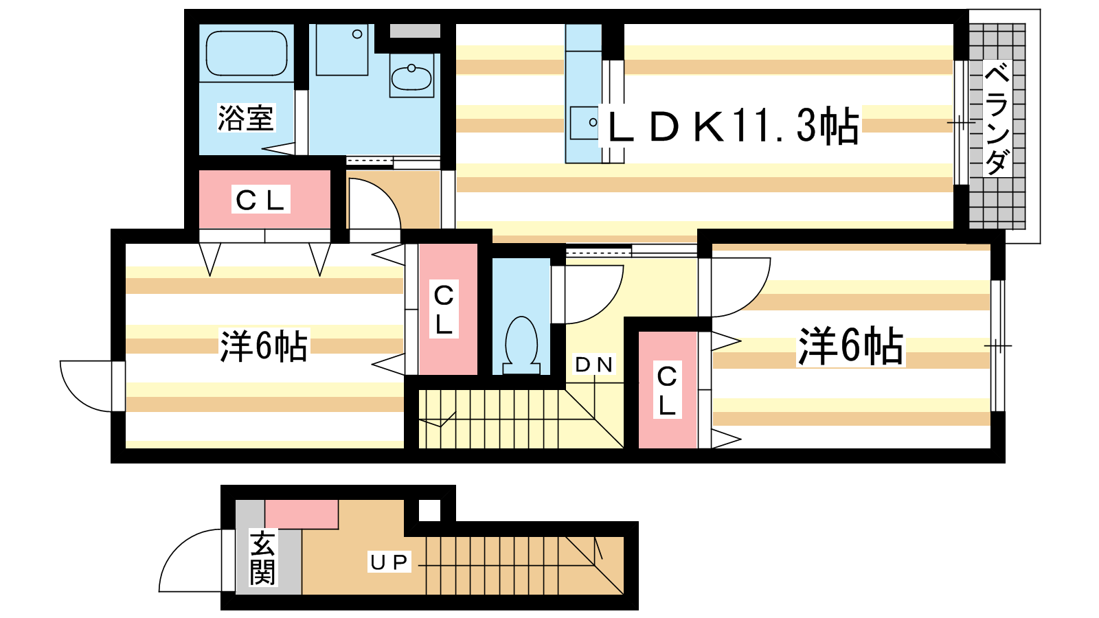 - 洋室6帖、洋室6帖、LDK11.3帖