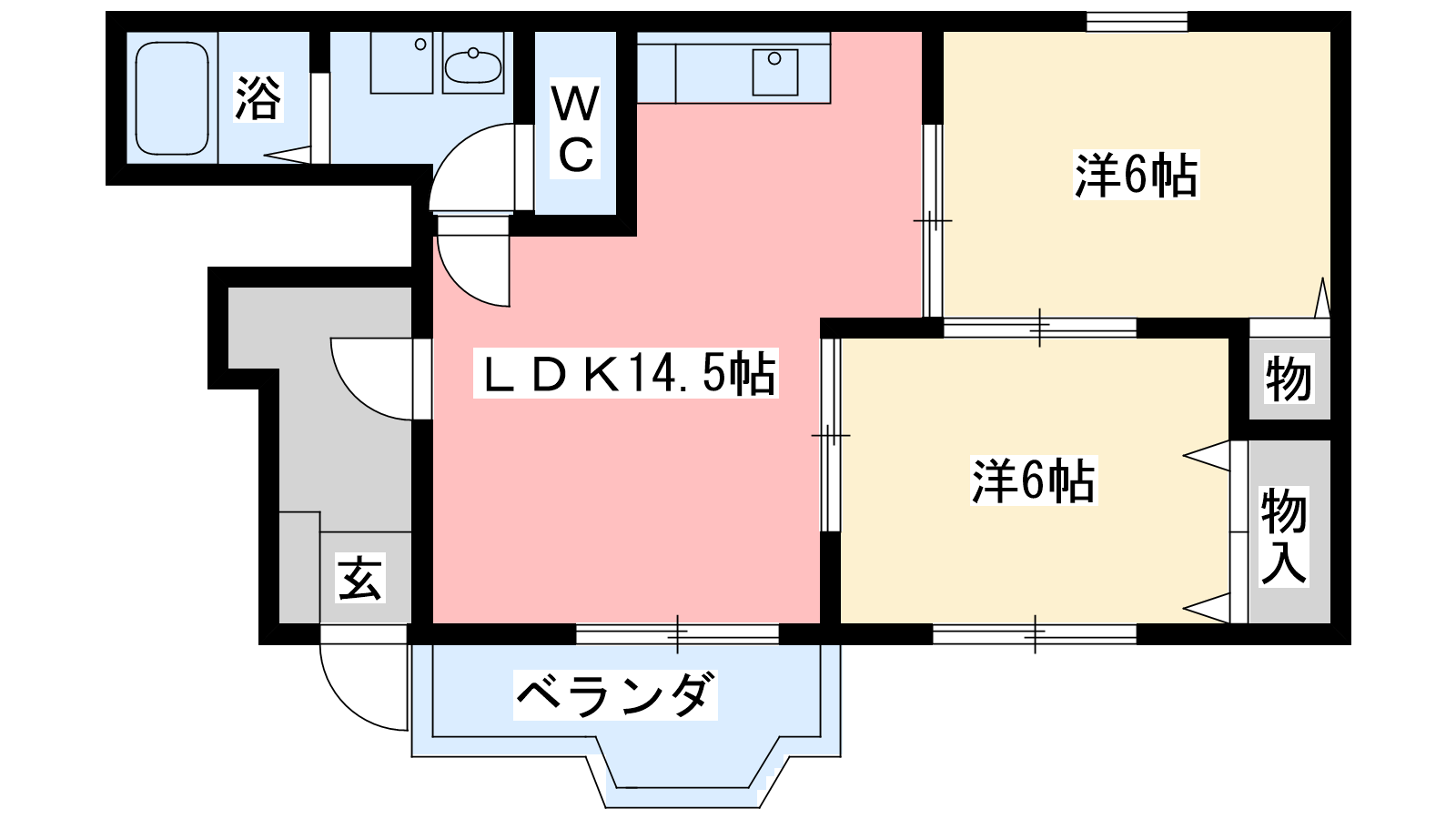 - 洋室6帖、洋室6帖、LDK14.5帖