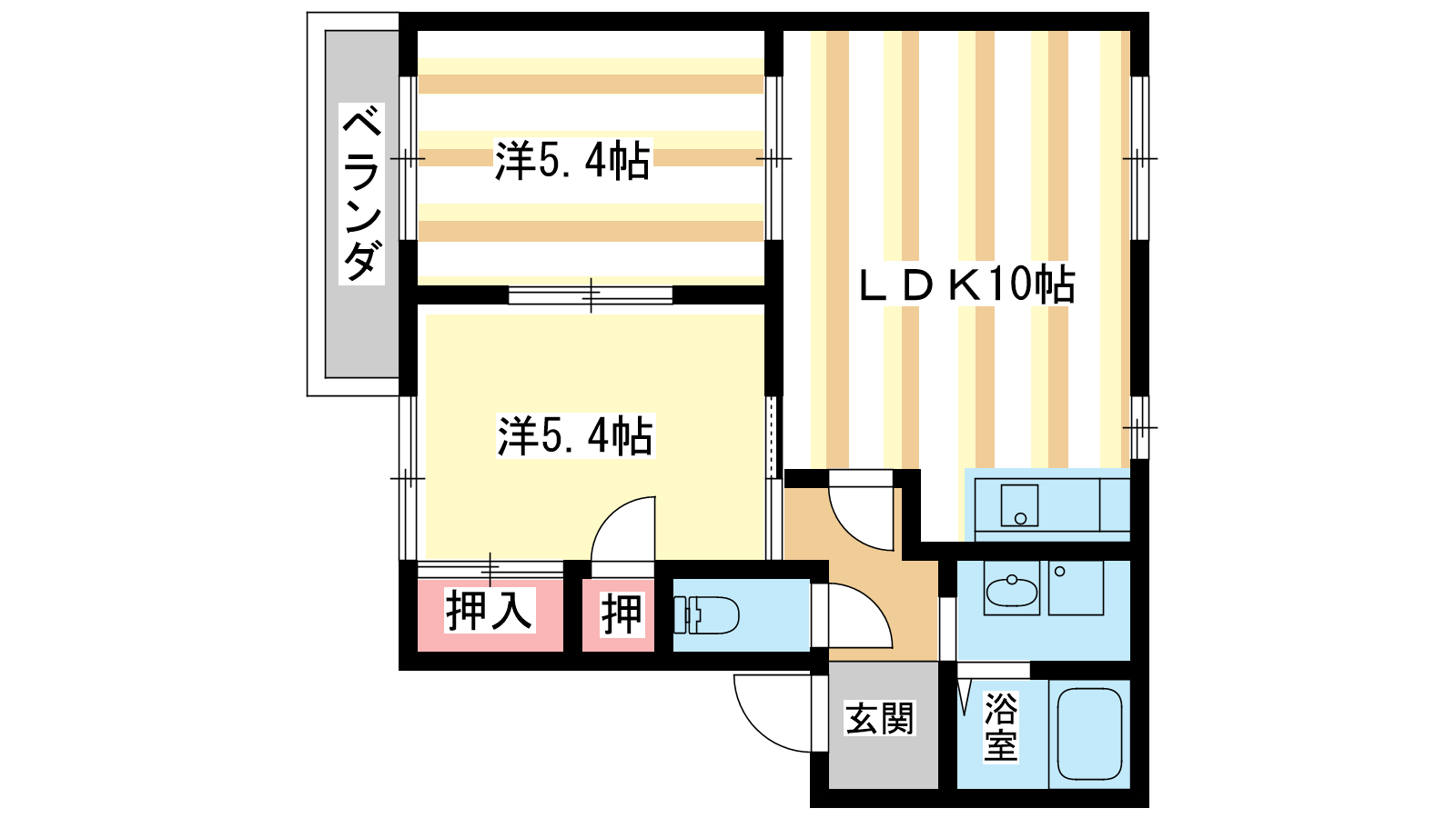 - 洋室6帖、洋室5.4帖、LDK10帖