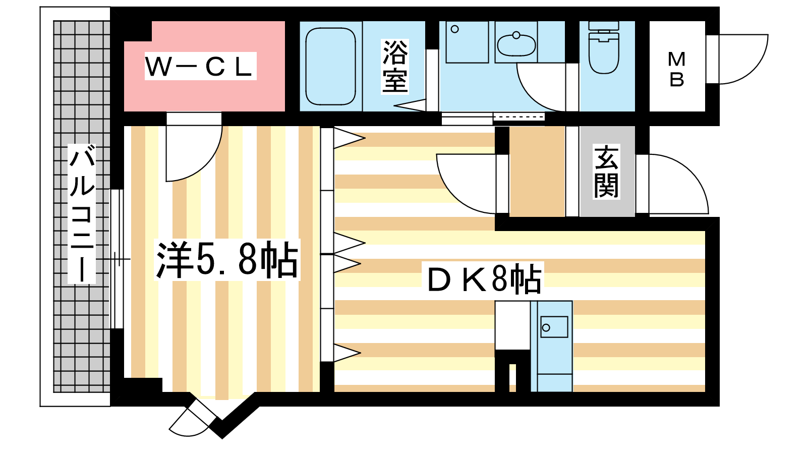 - 洋室5.8帖、DK8帖