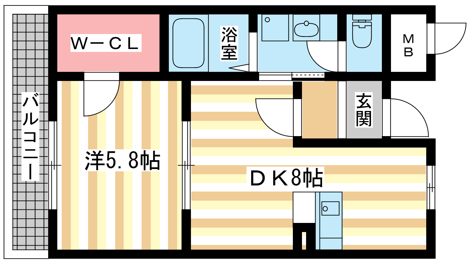 - 洋室5.8帖、DK8帖