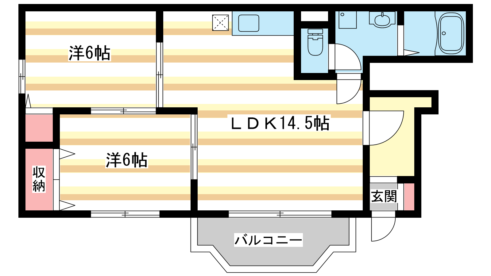 - 洋室6帖、洋室6帖、LDK14.5帖