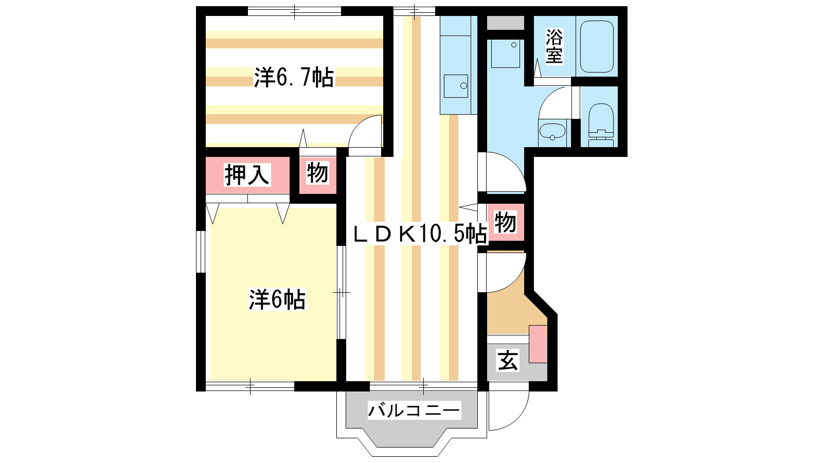 - 洋室6.7帖、洋室6帖、LDK11.7帖