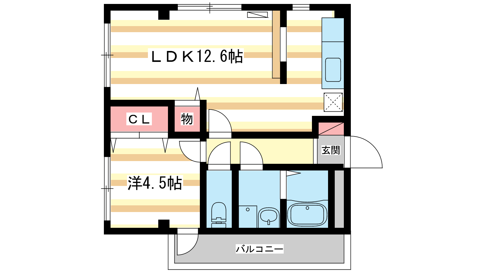- 洋室4.5帖、LDK12.6帖