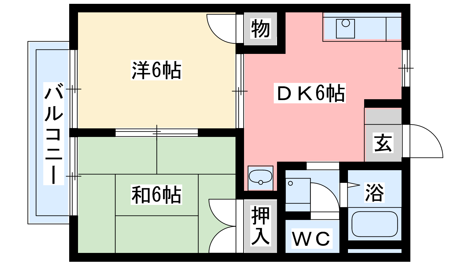 - 洋室6帖、和室6帖、DK6帖