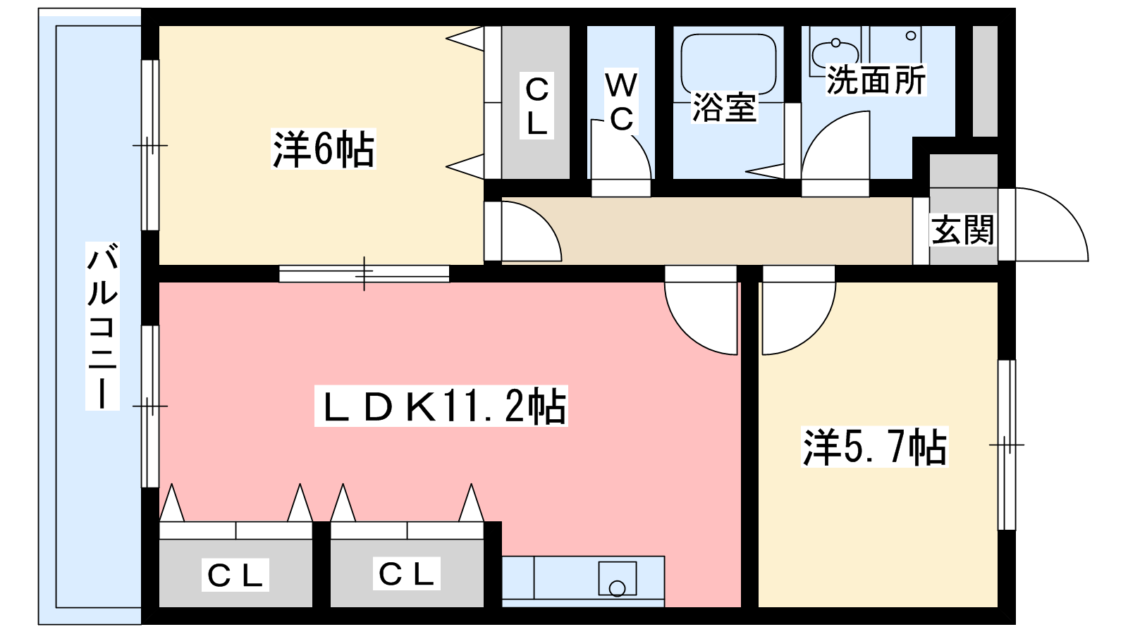 - 洋室6帖、洋室6帖、LDK12帖