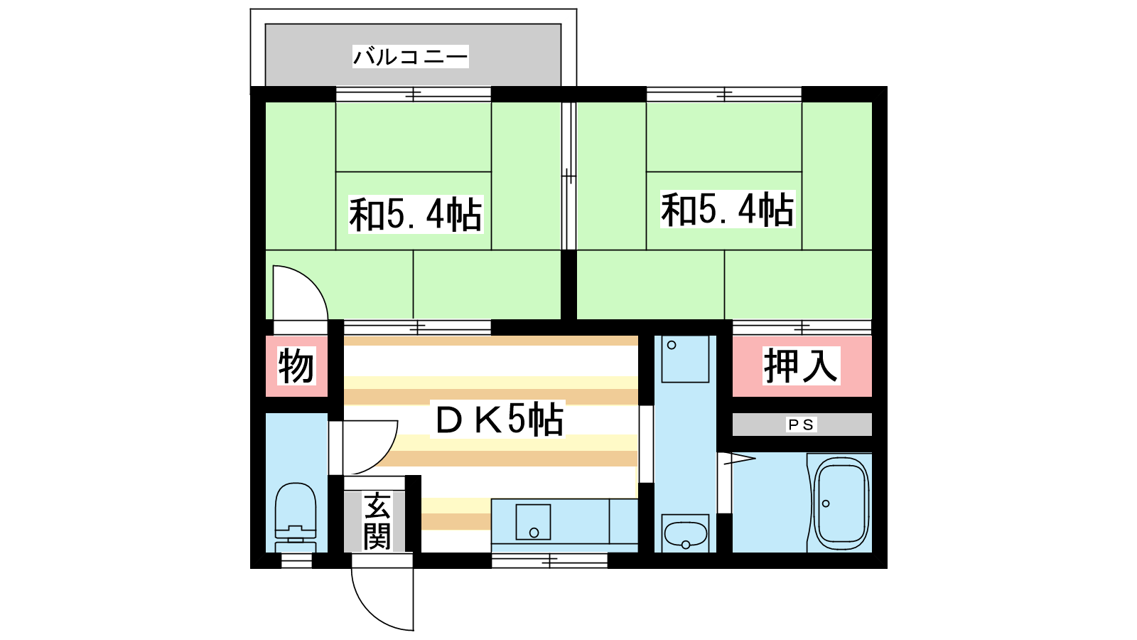 - 和室5.4帖、和室5.4帖、DK5帖
