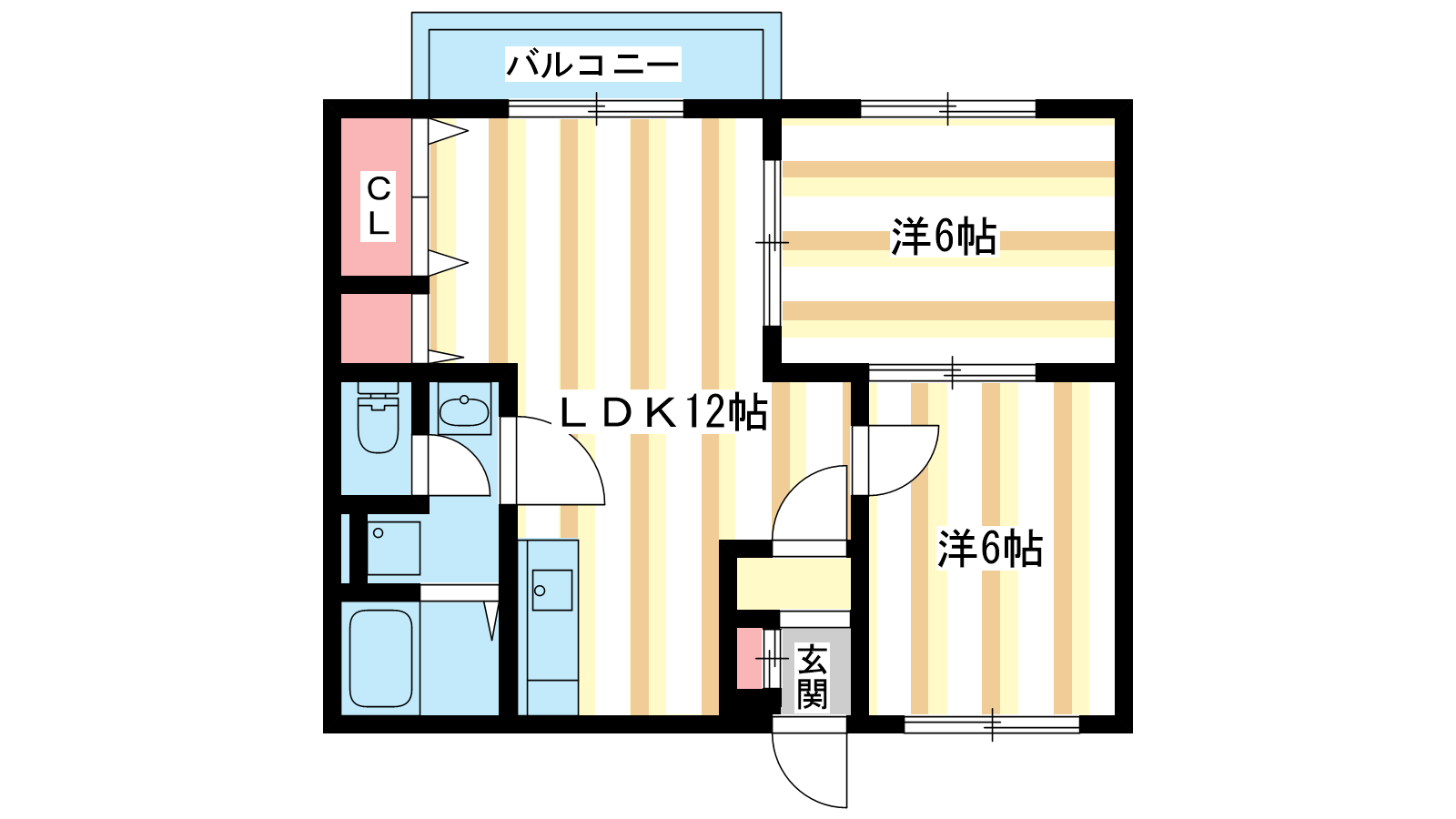 - 洋室6帖、洋室6帖、LDK12帖