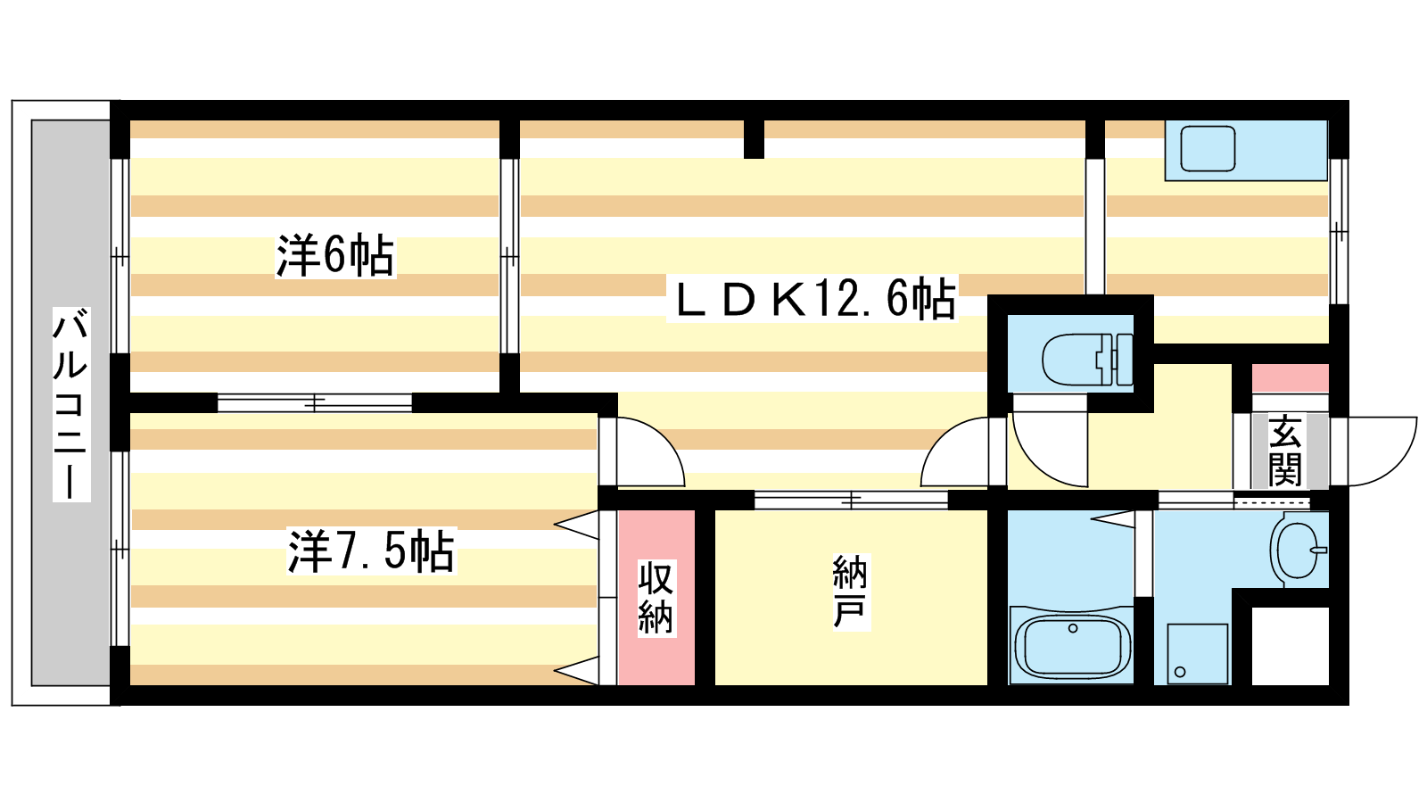- LDK12.6帖、洋室7.5帖、洋室6帖、S3帖