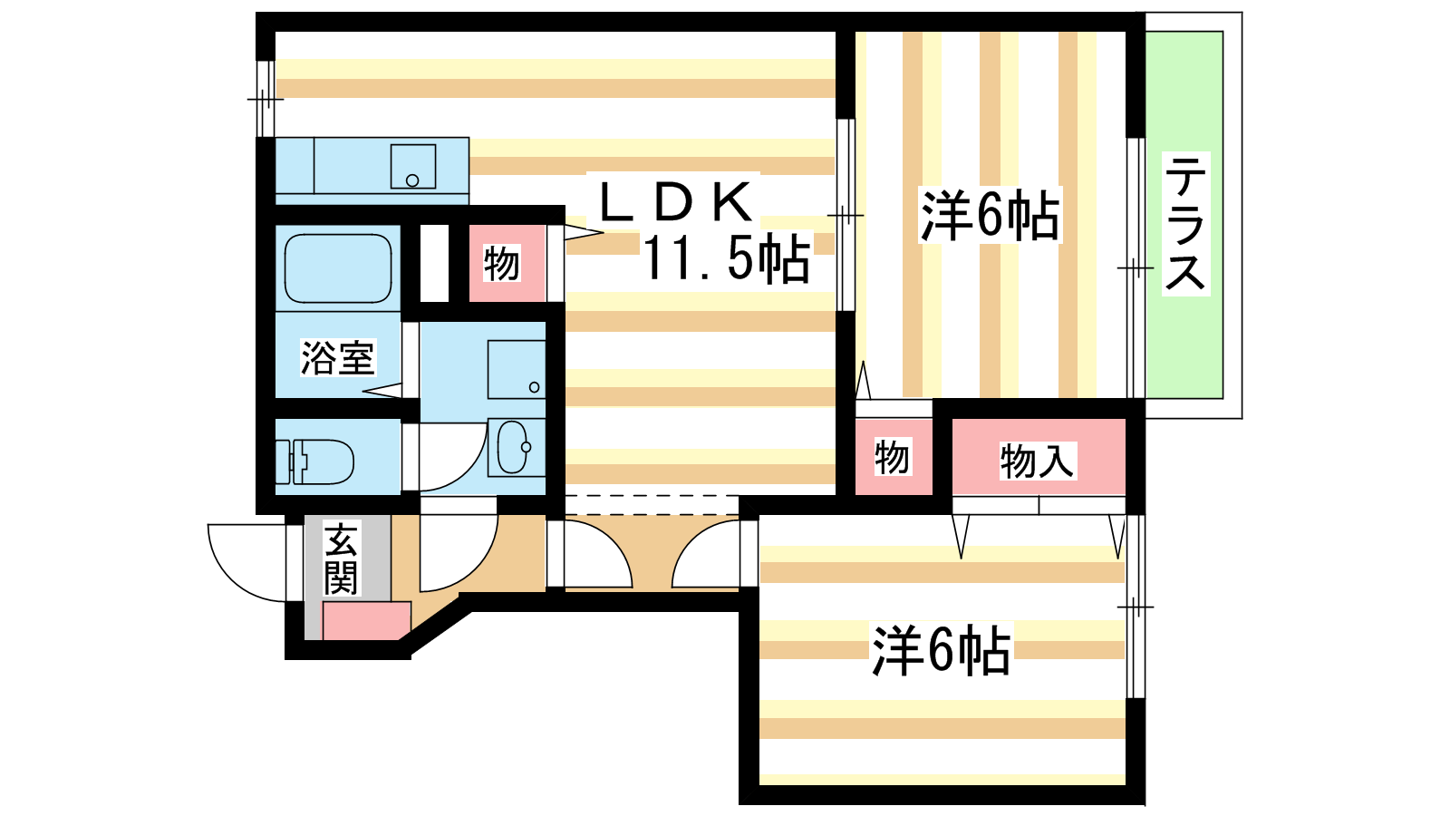 - 洋室6帖、洋室6帖、LDK11.5帖