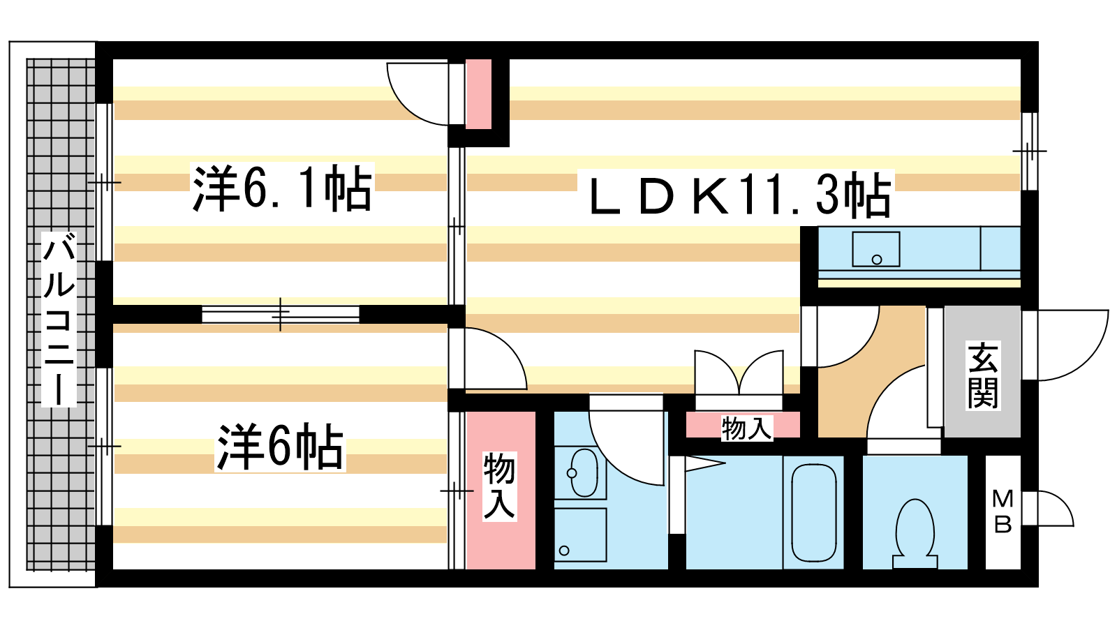 - 和室6帖、洋室6.1帖、LDK11.3帖