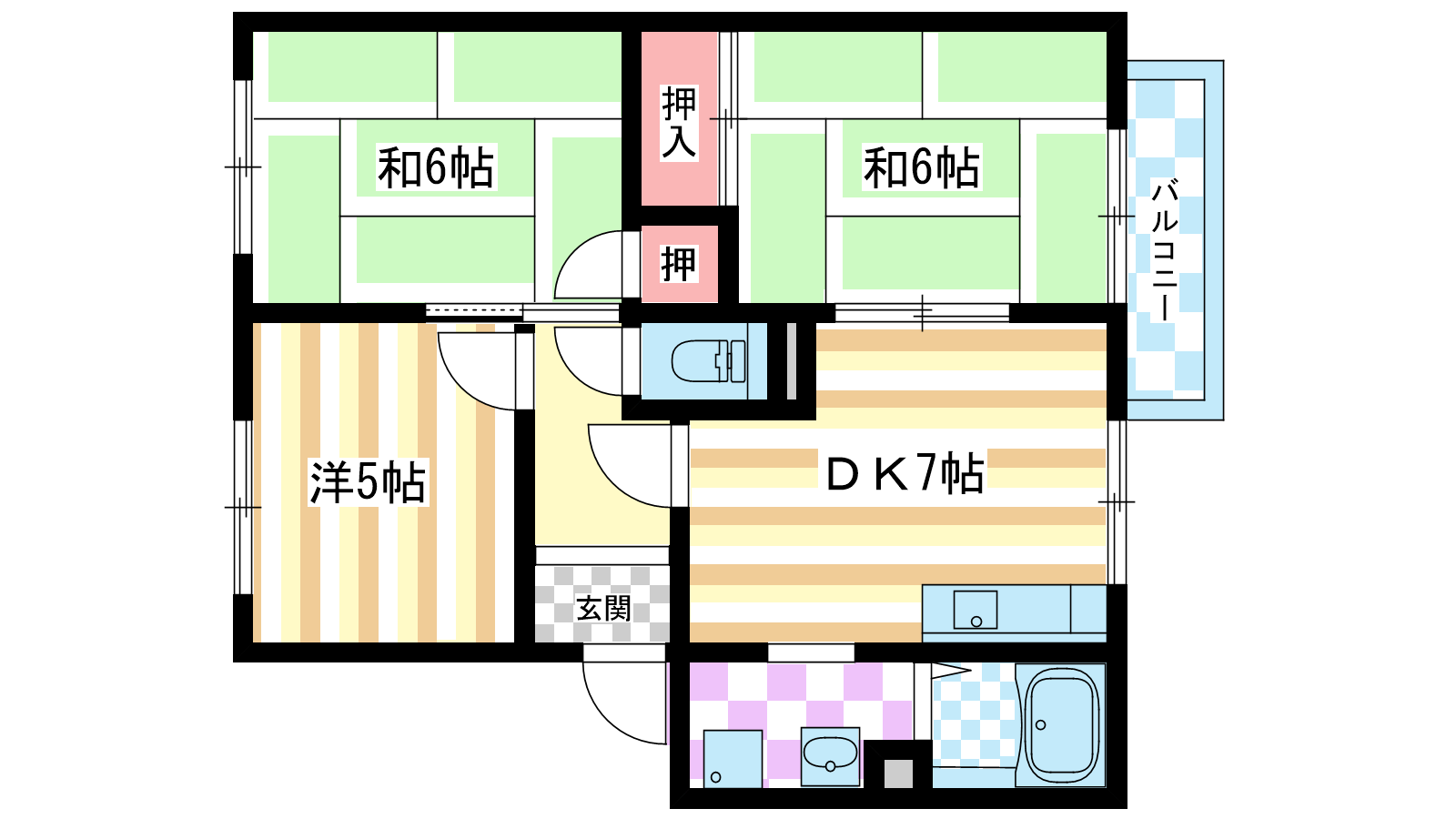 - 洋室5帖、和室6帖、和室6帖、DK7帖