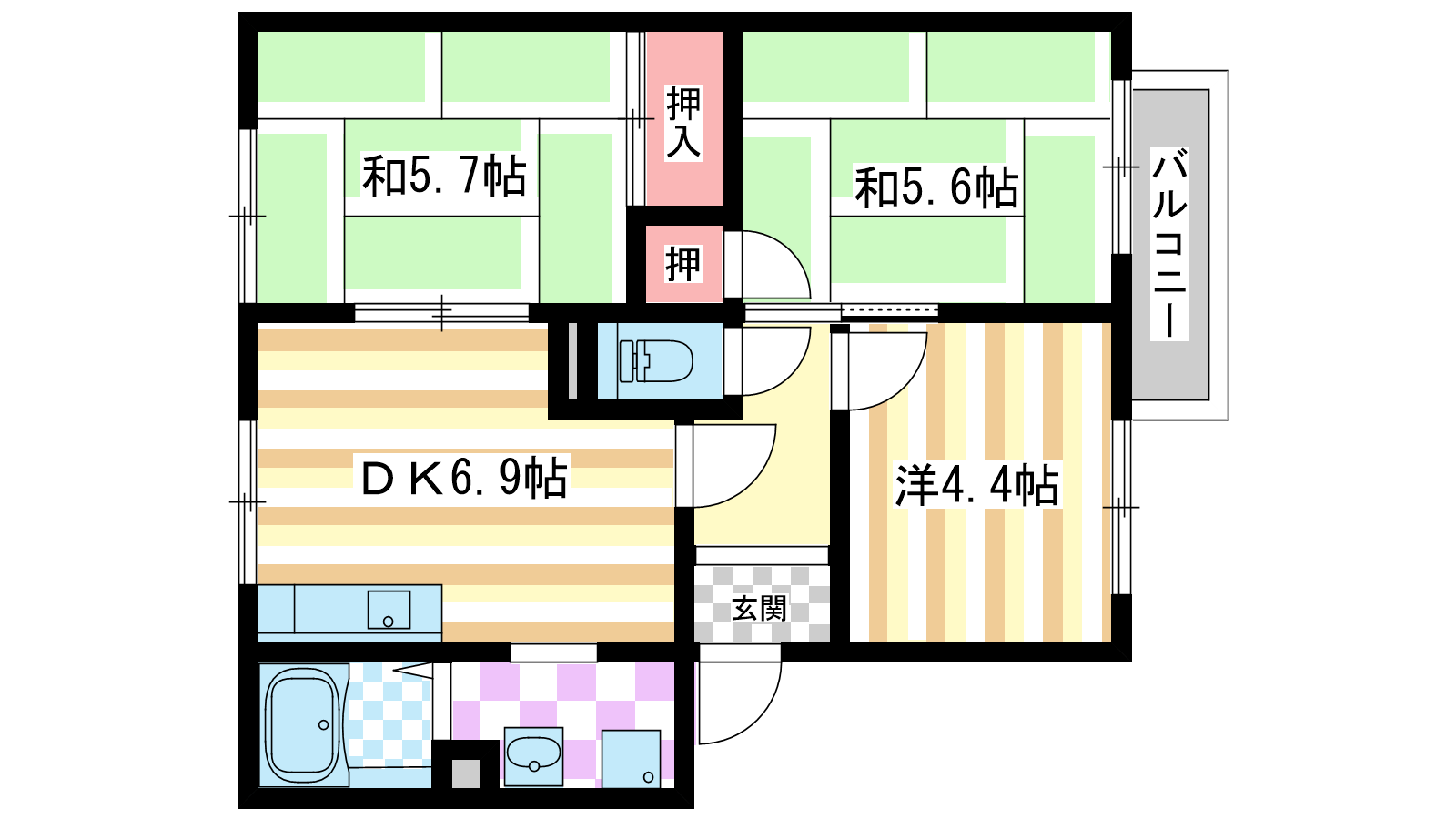 - 洋室4.4帖、和室5.6帖、和室5.7帖、DK6.9帖
