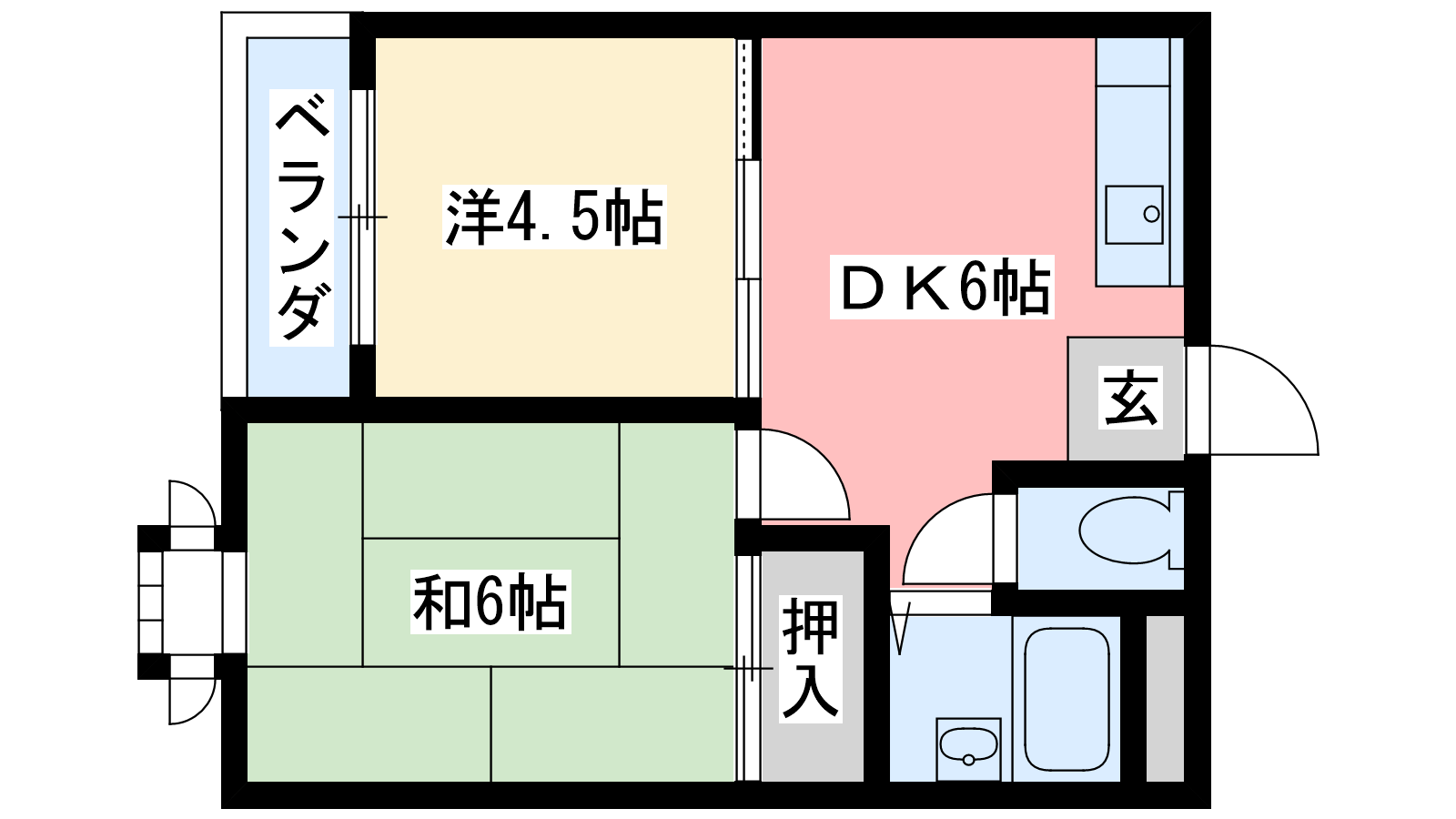 - 洋室4帖、和室6帖、DK6帖