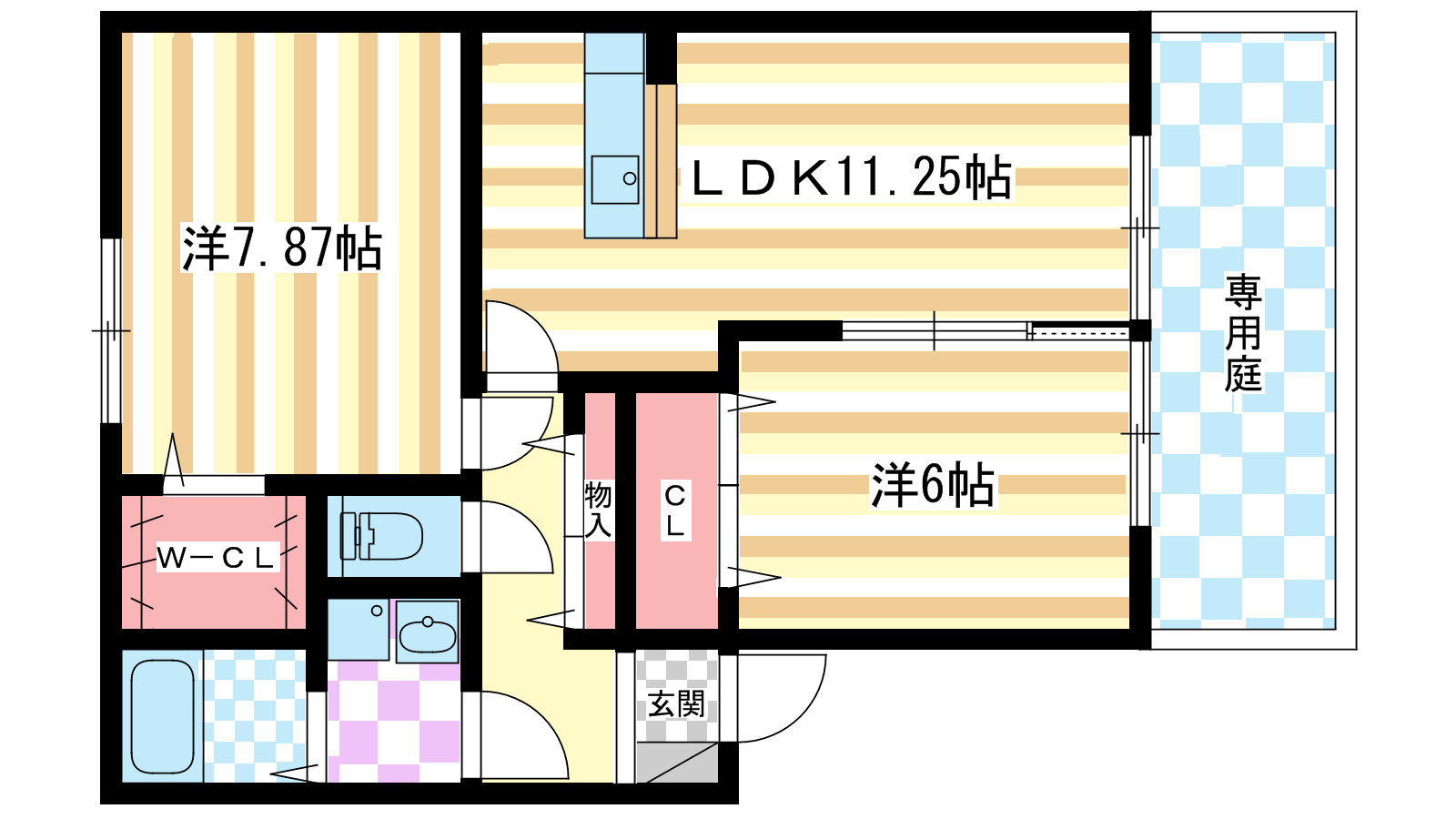 - 洋室7.87帖、洋室6帖、LDK10.25帖