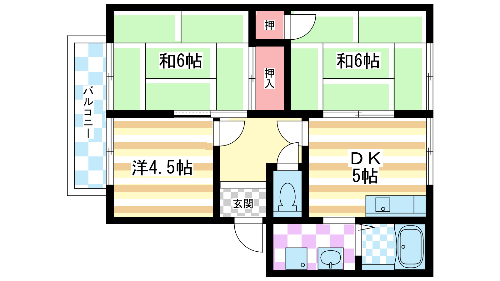 - 洋室4.5帖、和室6帖、和室6帖、DK5帖