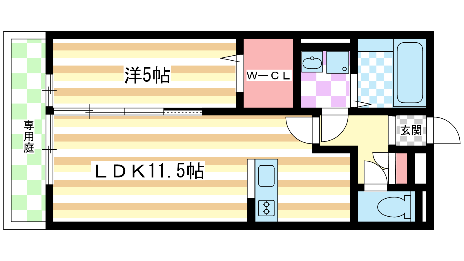 - 洋室5帖、LDK11.5帖