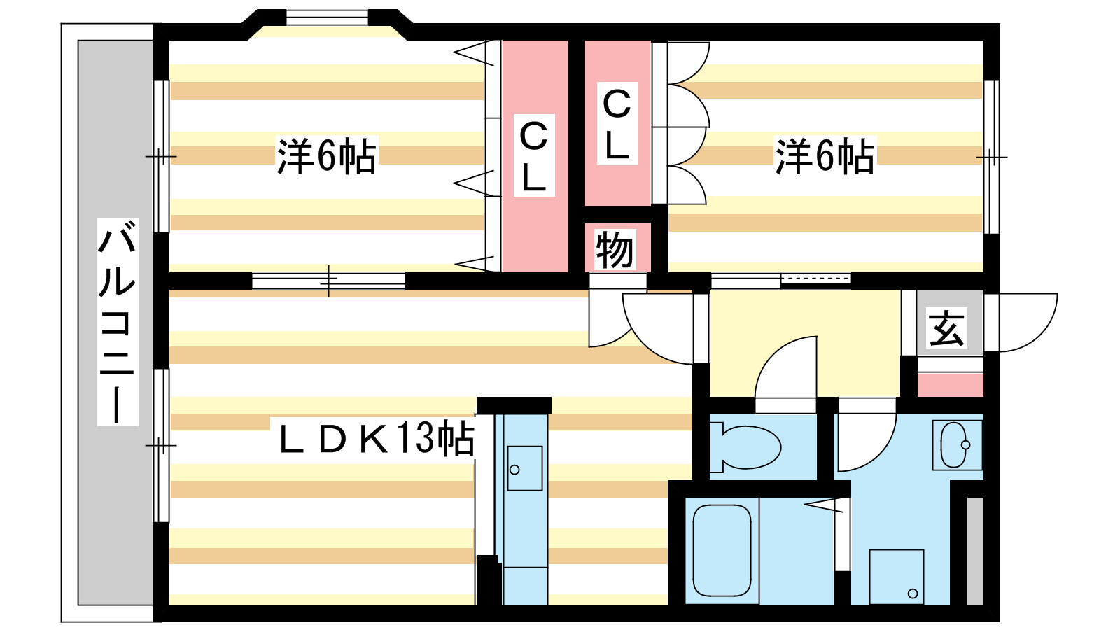 - 洋室6帖、洋室6帖、LDK13帖