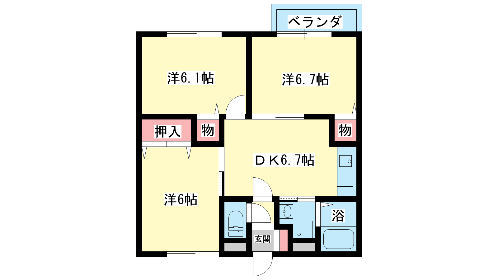 - 洋室6.7帖、洋室6.1帖、洋室6帖、DK6.7帖