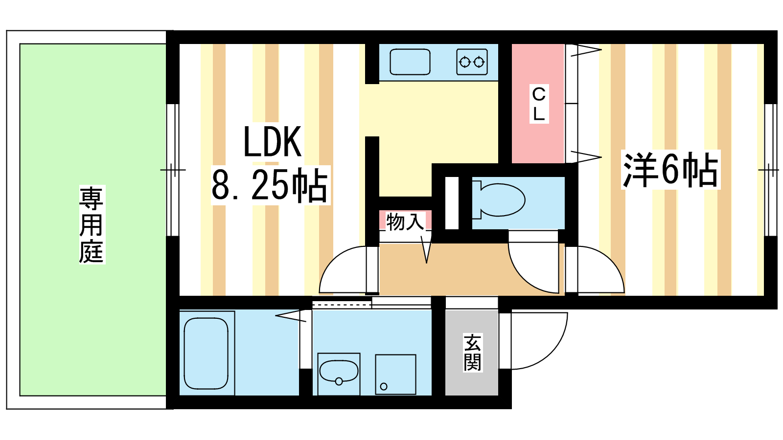 - 洋室6帖、LDK8.25帖