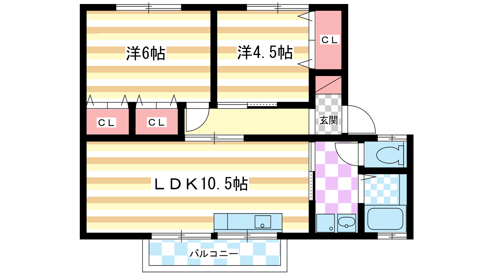 - 洋室4.5帖、洋室6帖、LDK10.5帖
