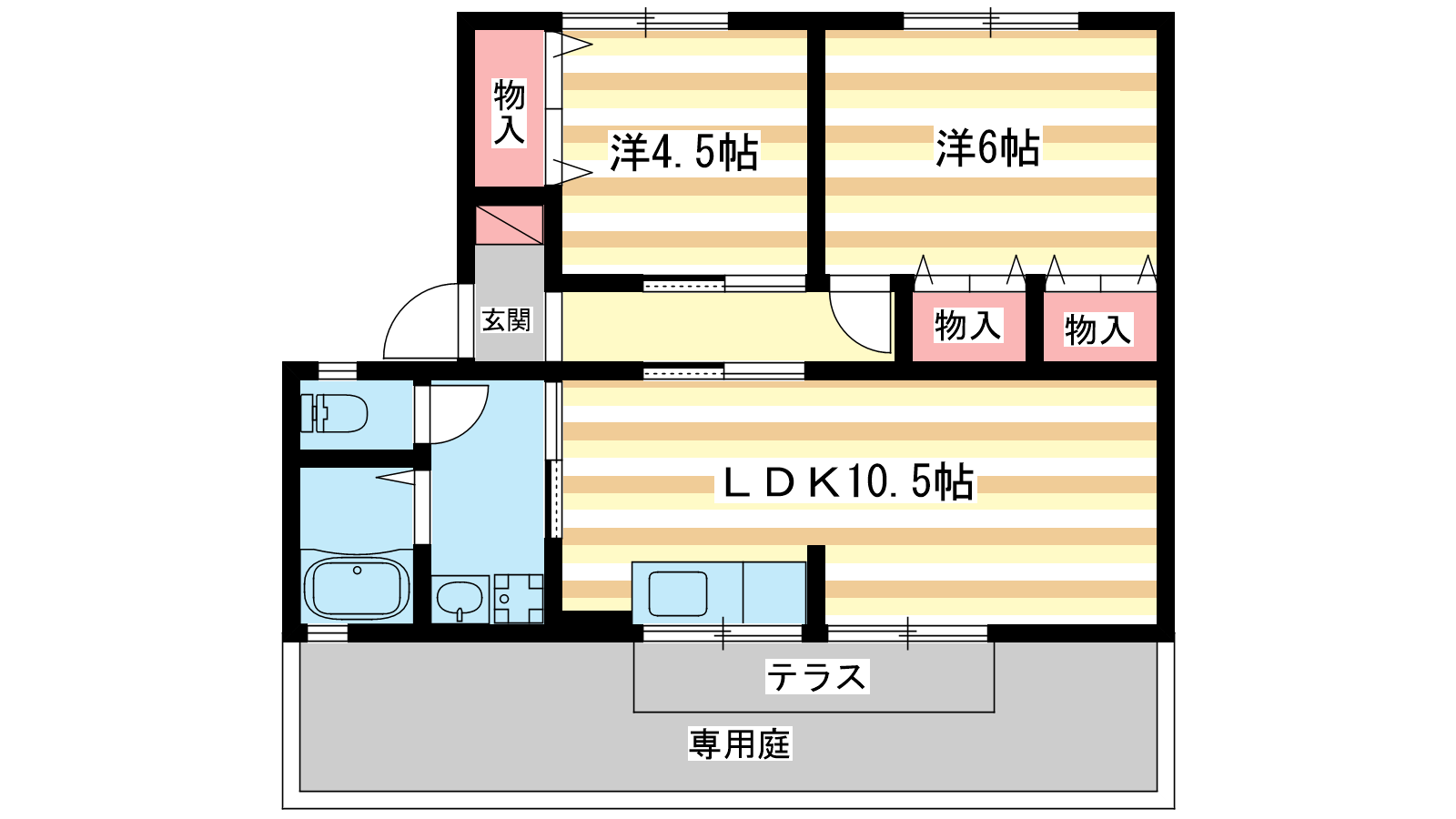 - 洋室4.5帖、洋室6帖、LDK10.5帖