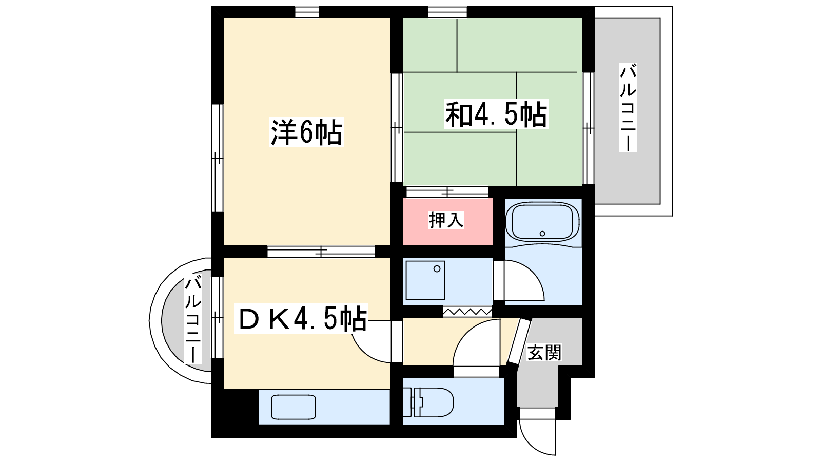 - 洋室6帖、和室4.5帖、DK4.5帖
