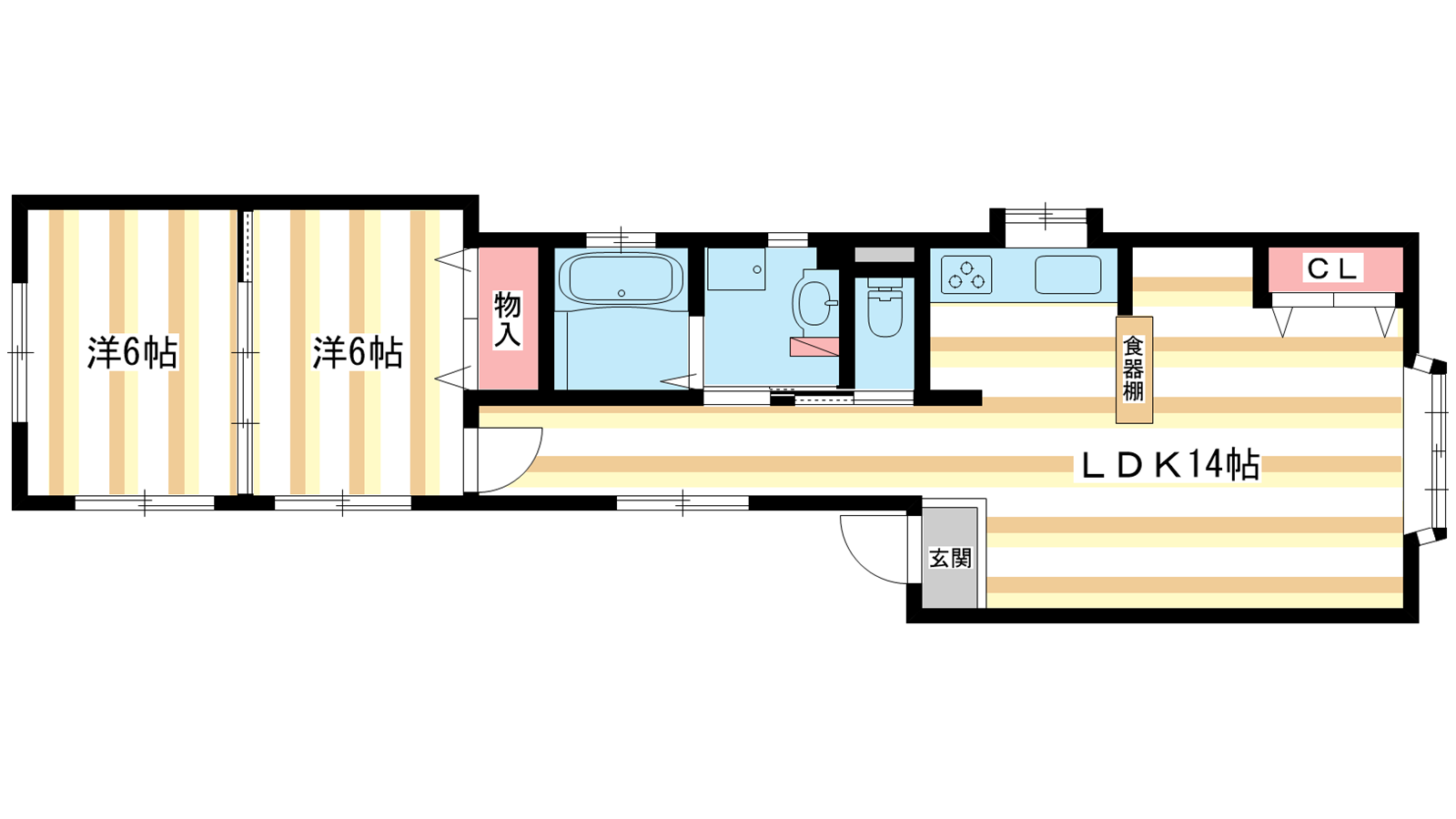 - 洋室6帖、洋室6帖、LDK14帖