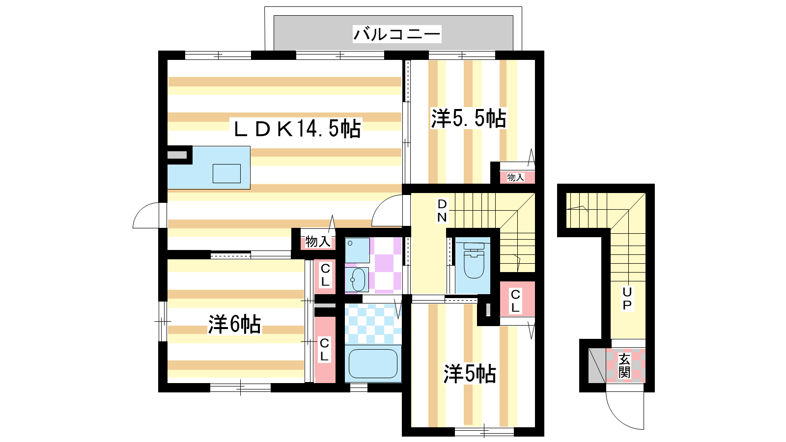 - 洋室6帖、洋室5.5帖、洋室5帖、LDK14.5帖