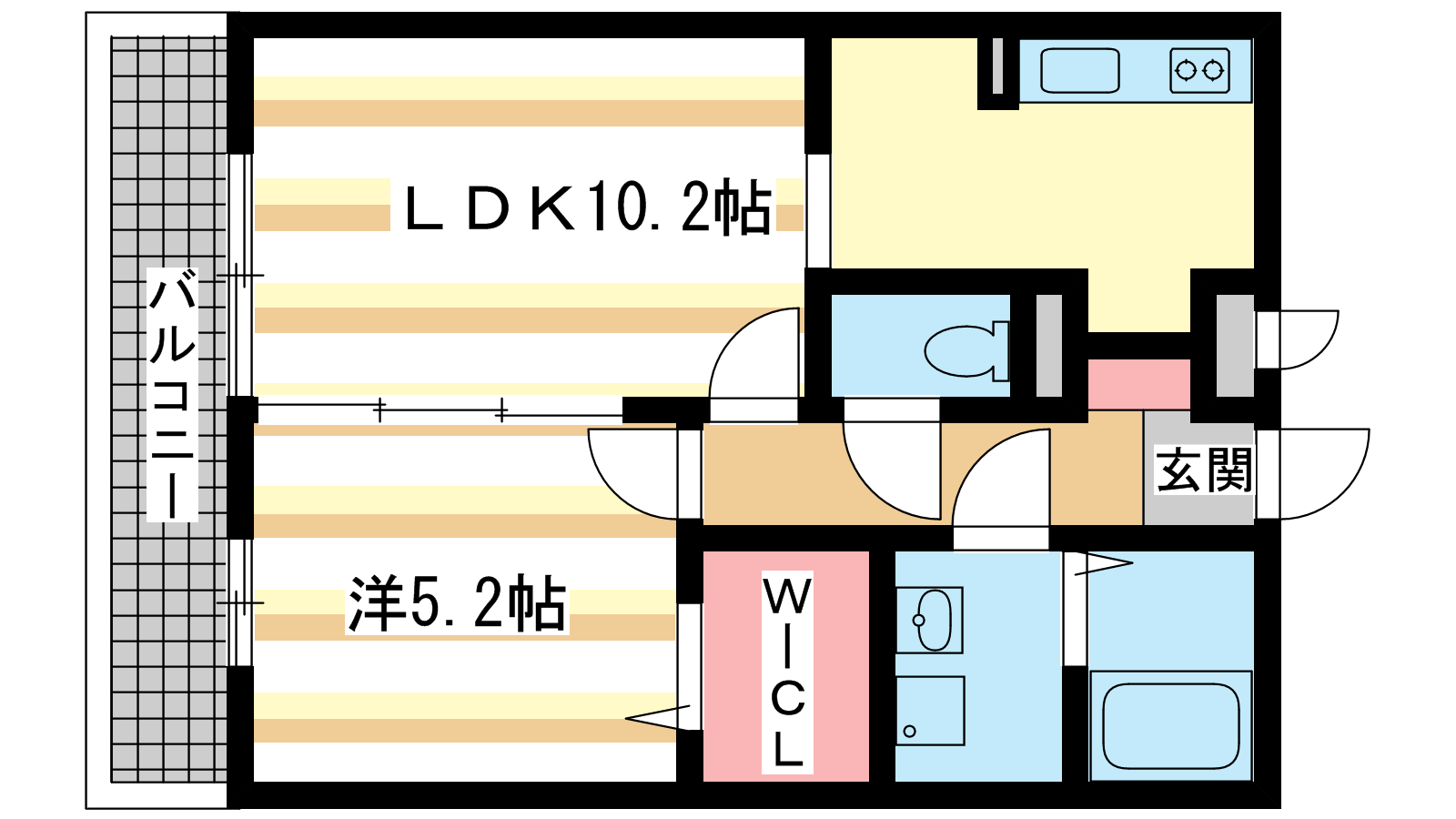 - 洋室5.2帖、LDK10.2帖、S2帖