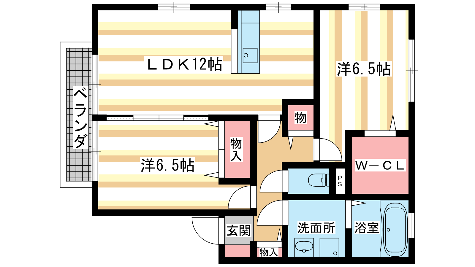- 洋室6.5帖、洋室6.5帖、LDK12帖